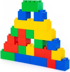 Gran juego de construcción infantil con 24 piezas de la marca Wader que ofrece un juego seguro y divertido desde 1 año. Las piezas de colores y extra grandes con dimensiones de 21,5 × 10,5 × 12 cm fomentan la motricidad fina, la creatividad y la construcción sin riesgo de ingestión.