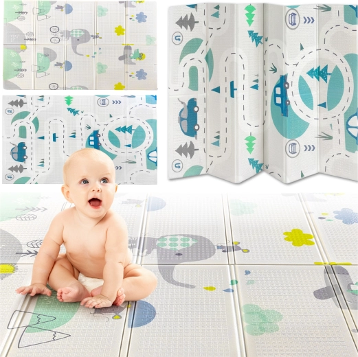 El material XPE es no tóxico, sin olor, fácil de lavar e impermeable: solo necesitas pasar un paño húmedo. La colchoneta se pliega fácilmente hasta adoptar un formato compacto y se guarda en la práctica bolsa con asas, por lo que es ideal para viajes, visitas y uso en exteriores.
