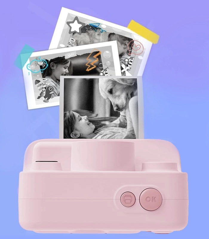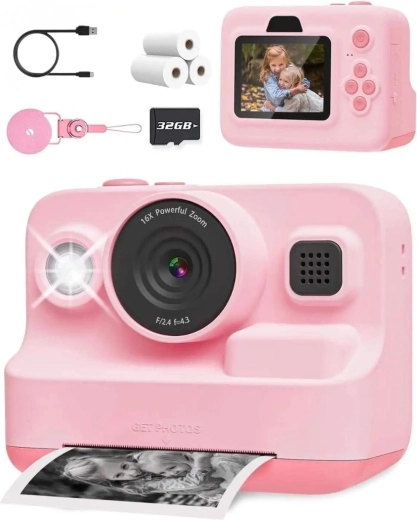 La cámara infantil rosa con impresora integrada combina fotografía, grabación de video y divertidos minijuegos en un solo dispositivo. Gracias a la tecnología de impresión térmica, los niños obtienen sus copias al instante, sin tinta ni tóneres. Incluye pantalla de 2,4", video 1080P, tarjeta de 32 GB en el paquete, carga por USB‑C y 3 rollos de papel para horas de creatividad. Ideal para pequeños exploradores en excursiones, en la escuela y en eventos familiares. Impresión instantánea, manejo sencillo, estructura resistente y amplio equipamiento incluido.