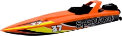 La lancha a motor tiene un mecanismo de cuerda con hélice funcional, así que al darle cuerda se lanza sobre la superficie y garantiza acción también en el agua.