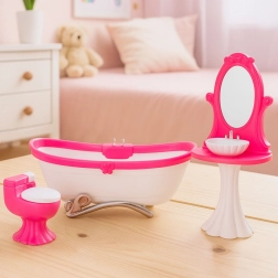 El conjunto está fabricado en plástico resistente y, gracias a sus dimensiones compactas, encaja en la mayoría de las casas de muñecas. Las líneas elegantes, los elementos decorativos y las piezas ligeras y fáciles de transportar facilitan organizar la escena exactamente según las ideas del niño.