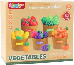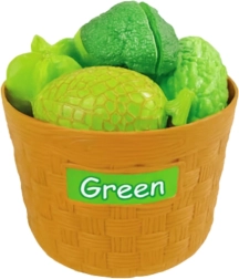 - frutas y verduras (34 uds), cestas de colores, cuchillo de plástico, tabla de cortar, embalaje del fabricante