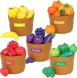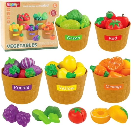 El colorido juego educativo con 34 piezas enseña a los niños la clasificación por colores, categorías y habilidades básicas de cocina. Las piezas realistas de plástico seguro se pueden cortar con velcro; incluye cestas de clasificación, cuchillo de plástico y tabla de cortar. Una excelente opción para desarrollar la motricidad fina, la coordinación mano-ojo y el juego creativo en casa o en el jardín de infancia.