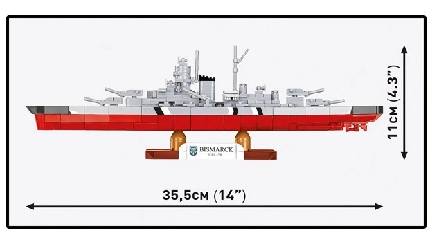 Construye el legendario acorazado BISMARCK a escala 1:700 con 590 piezas. El modelo detallado de COBI ofrece formas realistas, impresiones directas sin pegatinas, armamento móvil y un elegante soporte con placa, ideal para coleccionistas, entusiastas de la historia y como decoración con estilo.