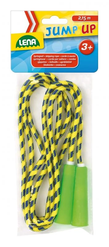 Descubre la alegría del movimiento con la comba LENA, la compañera ideal para niños a partir de 3 años. Gracias a sus empuñaduras de plástico ligeras y su resistente cuerda textil, la comba es cómoda en la mano, facilita el salto y soporta el uso diario tanto en el patio como en casa.