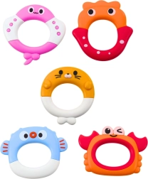 Los aros intercambiables con diferentes colores y formas fomentan el agarre, la coordinación y el descubrimiento de nuevas combinaciones de juego.