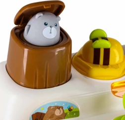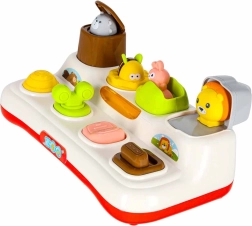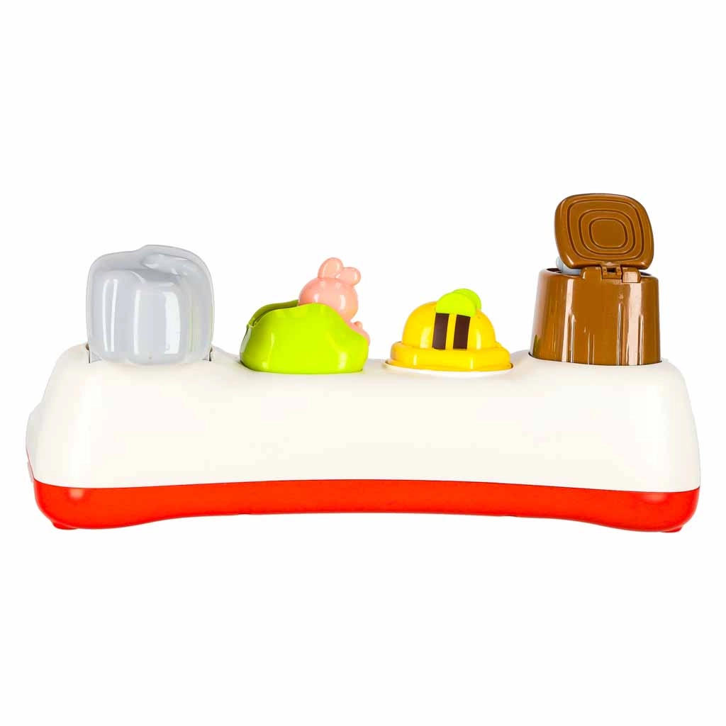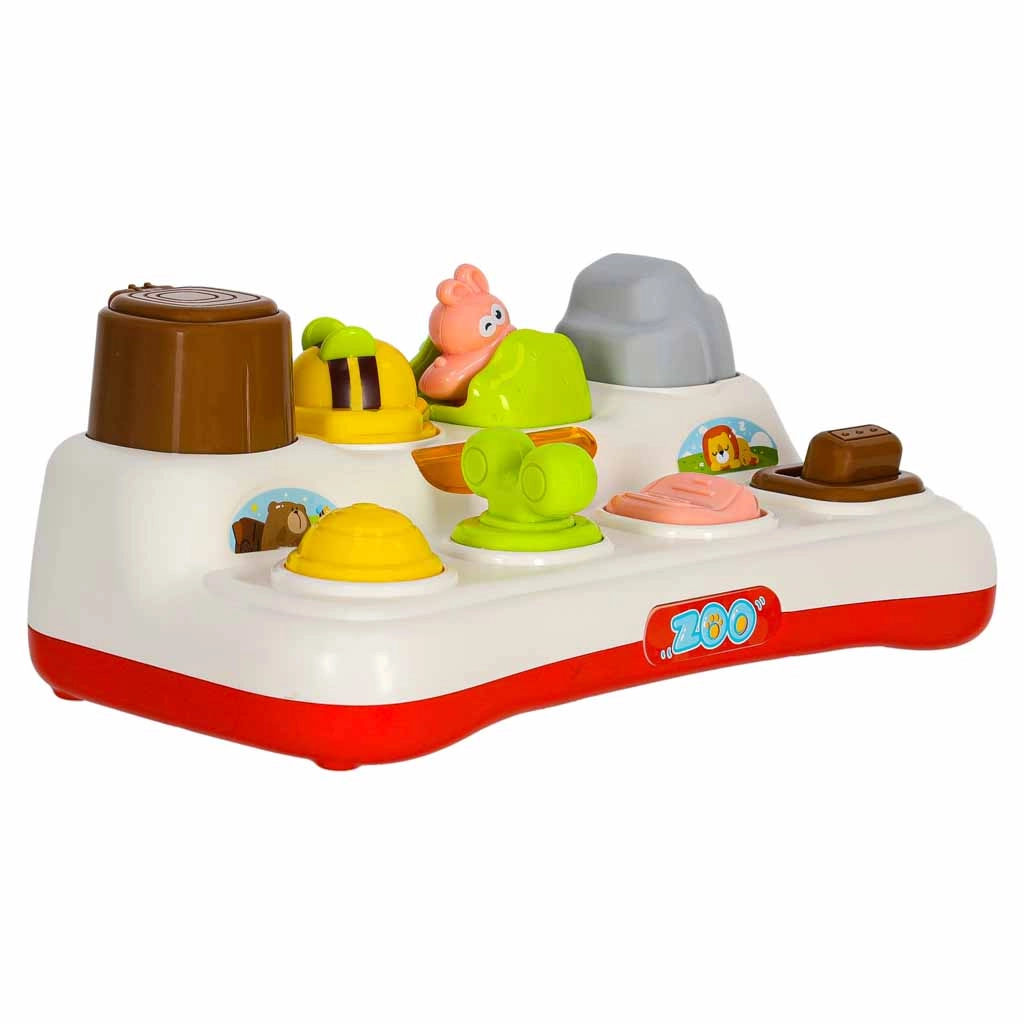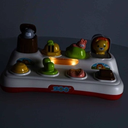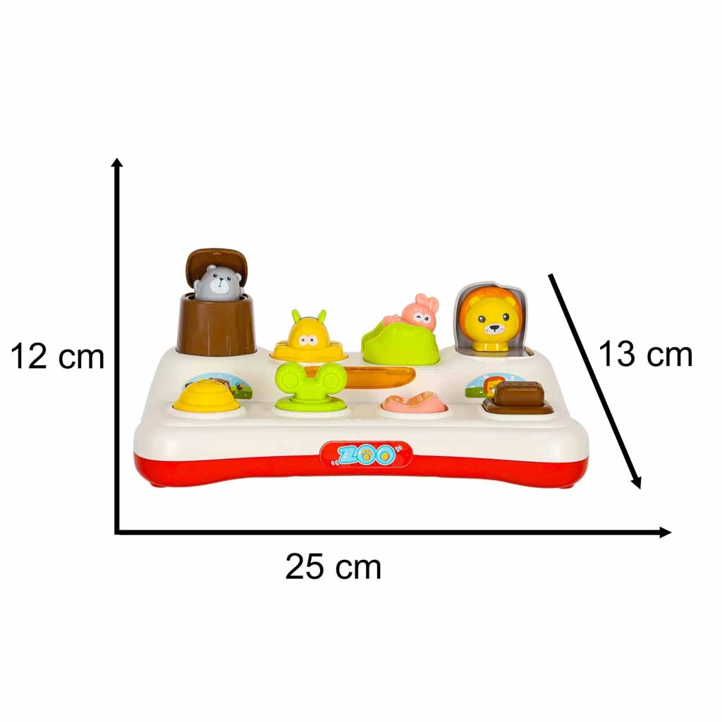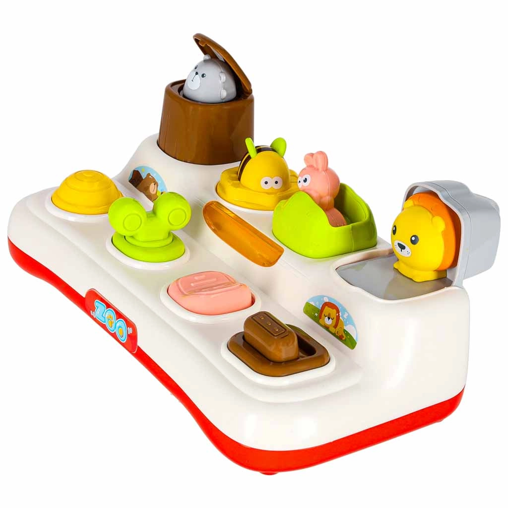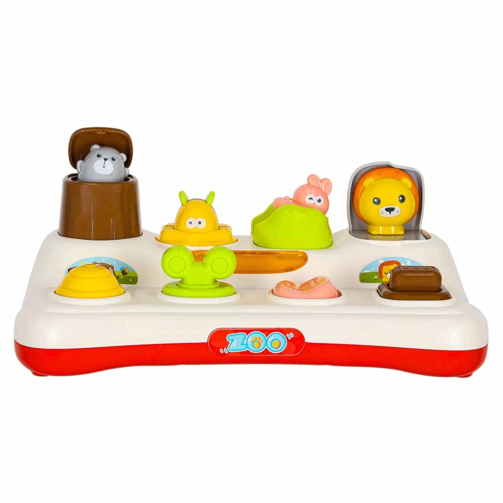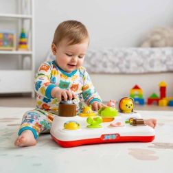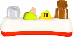 Descubre la alegría de aprender con este juguete interactivo de tipo pop-up para niños a partir de 18 meses. El niño presiona, desliza o gira los controles y de las ventanitas saltan animalitos de colores. El juguete fomenta la motricidad fina, el pensamiento lógico y la comprensión del principio causa–efecto. Gracias a los efectos de luz y las melodías, la diversión es aún más atractiva, y además es posible silenciar completamente el sonido.