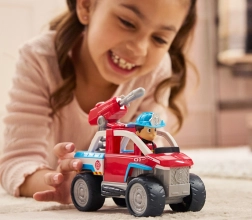 Con este quad de rescate, los niños se sumergen en el mundo de PAW Patrol y se convierten en parte de la aventura. La figura detallada de Ryder puede sentarse en la cabina y, gracias a sus extremidades y cabeza articuladas, está lista para cualquier acción. Las ruedas grandes aseguran un desplazamiento fluido en superficies lisas y la construcción resistente soporta el juego diario.