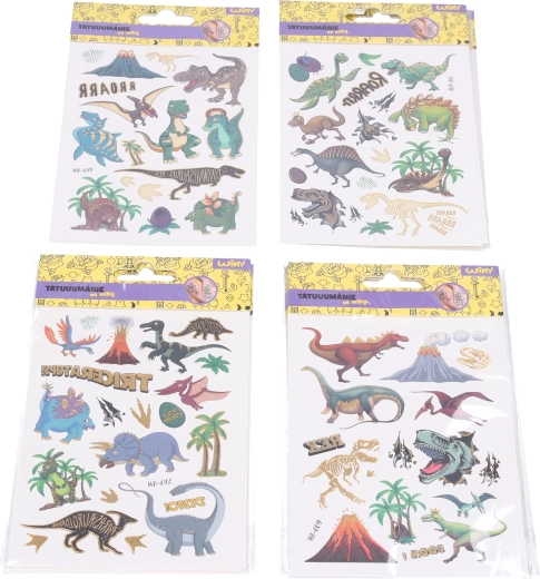 Divertidas calcomanías temporales con motivos de dinosaurios de 10,5 × 15 cm que encantarán a niños y adultos. Aplicación fácil, colores llamativos y 4 variantes de diseños para todos los gustos.