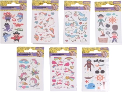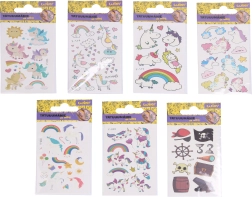 Divertidas pegatinas de tatuajes infantiles que brillan en la oscuridad, ideales para pequeños amantes de la fantasía y la aventura. El práctico formato de 6 × 10,5 cm y la gran mezcla de motivos de unicornios y piratas son perfectos para fiestas, regalos y el juego diario.
