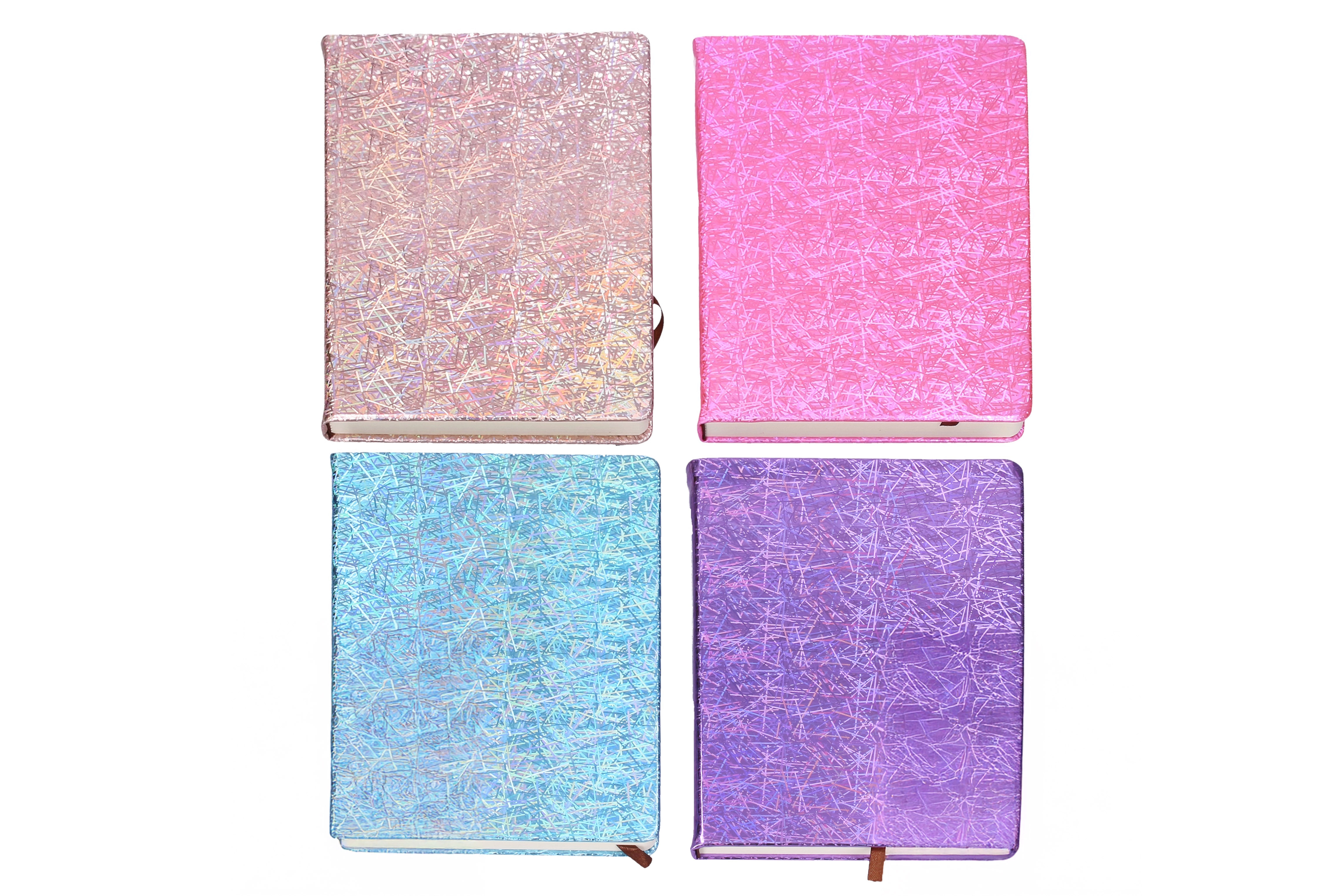 El surtido de colores —morado, plateado, rosa y azul— te permite elegir la variante según tu estado de ánimo o estilo. El cuaderno es adecuado para la escuela, la oficina y la planificación personal.