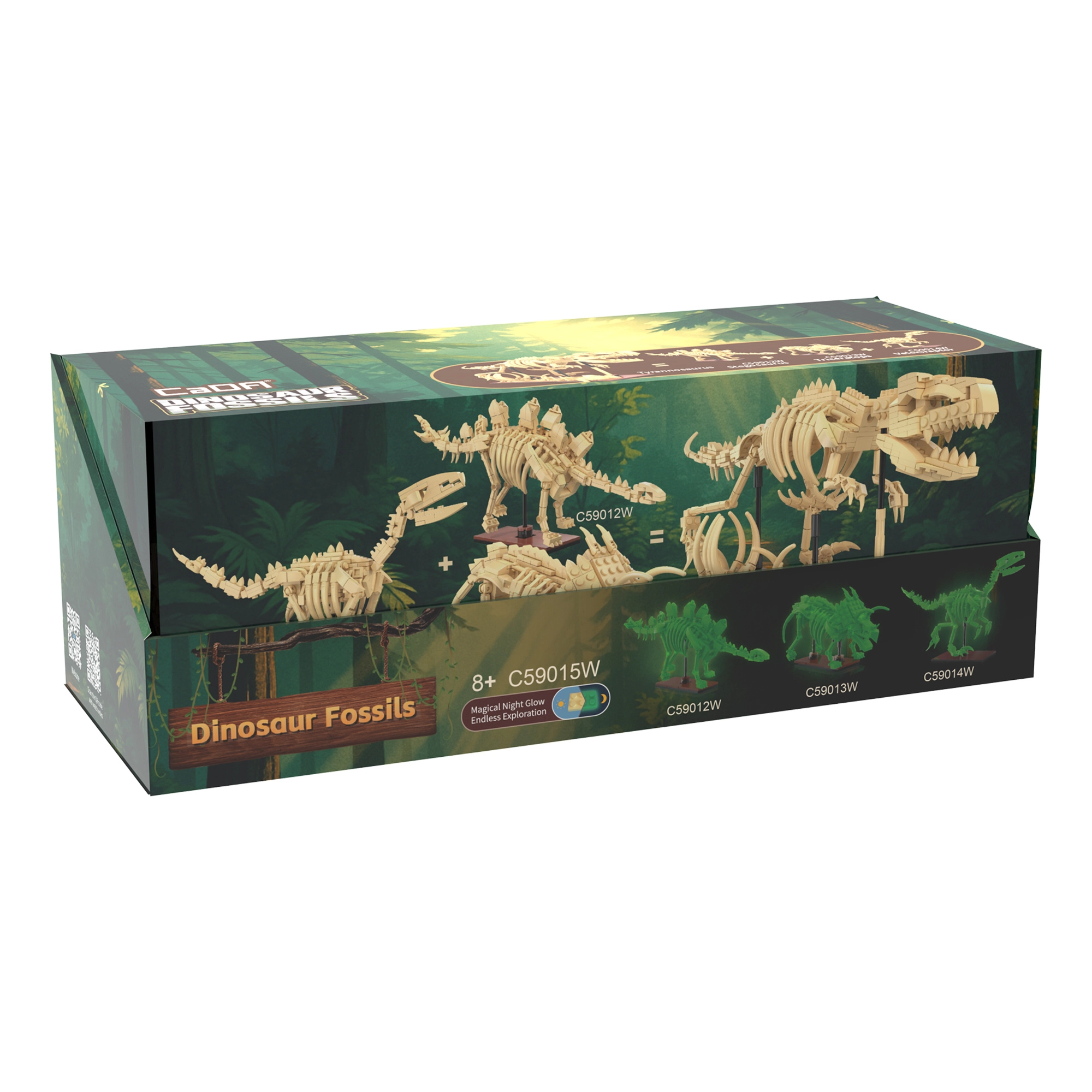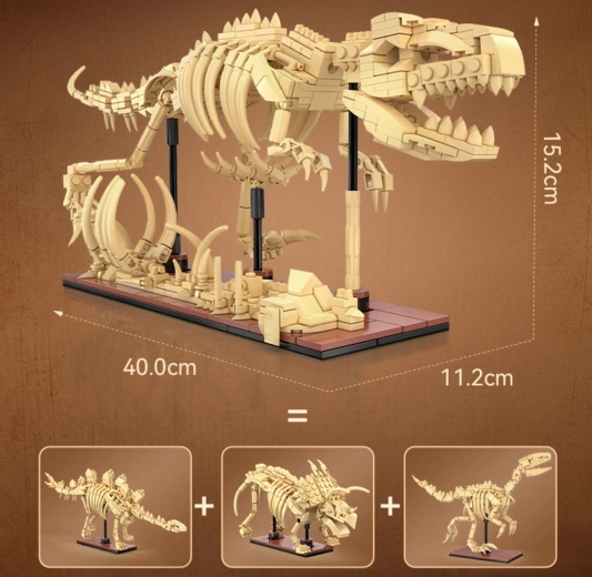 Los “huesos” brillan en la oscuridad y los modelos se colocan sobre bases firmes. Ideal para coleccionistas, fans de la paleontología y como decoración con estilo.
