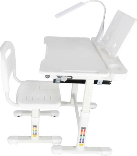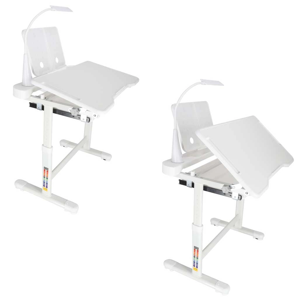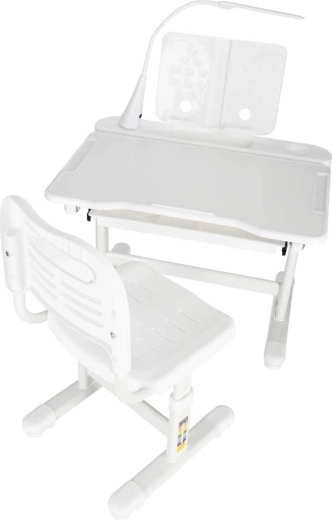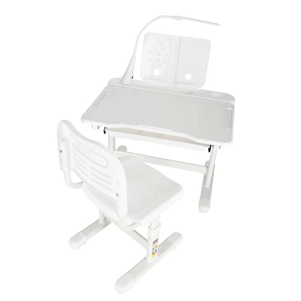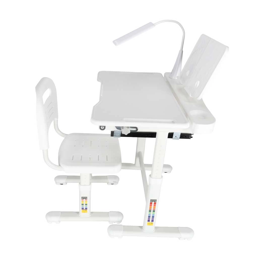 Este moderno conjunto infantil crece con tu hijo: mesa ajustable de 53–71 cm y silla con altura de asiento regulable de 28–40 cm que se adaptan fácilmente a su estatura y actividades. El tablero inclinable hasta 60° favorece una ergonomía correcta al escribir, leer y dibujar, aliviando la columna del niño.