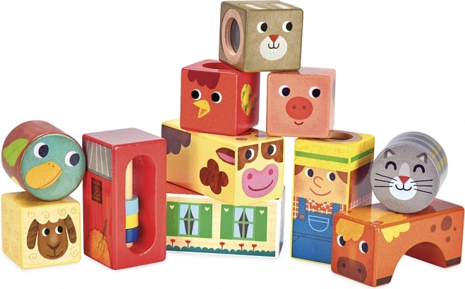 Te presentamos los Vilac Cubos sonoros de madera Granja, un juguete estupendo para pequeños exploradores. Este set incluye once cubos de madera, cada uno con distintos motivos de granja, que emiten diversos sonidos al girarlos y agitarlos.