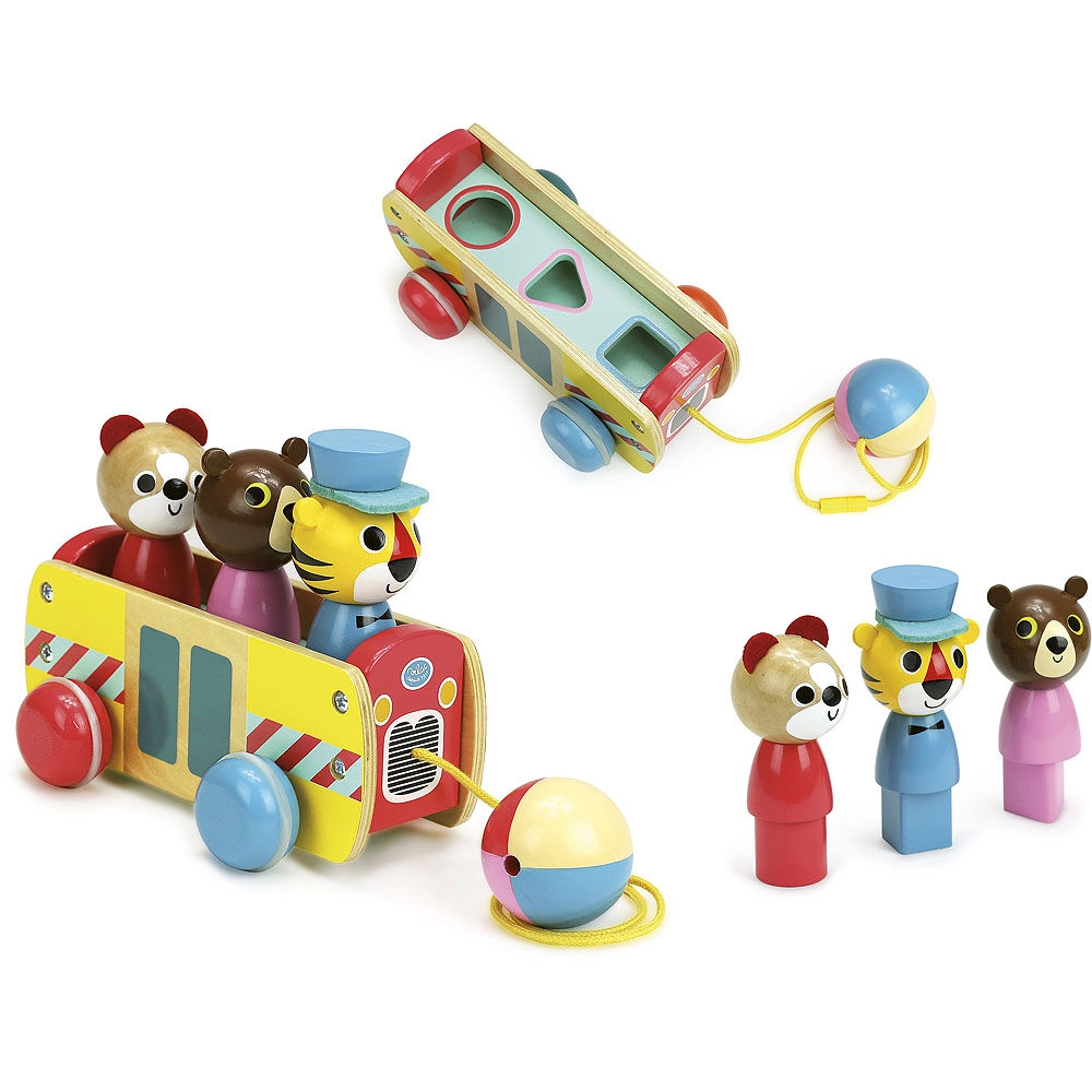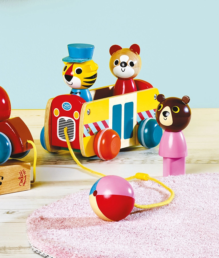 Este autobús de arrastre está hecho de madera de alta calidad y ofrece no solo diversión, sino también un reto para los pequeños pensadores. Con colores vivos y animalitos que se pueden insertar y retirar, apoya el desarrollo infantil en varias áreas: