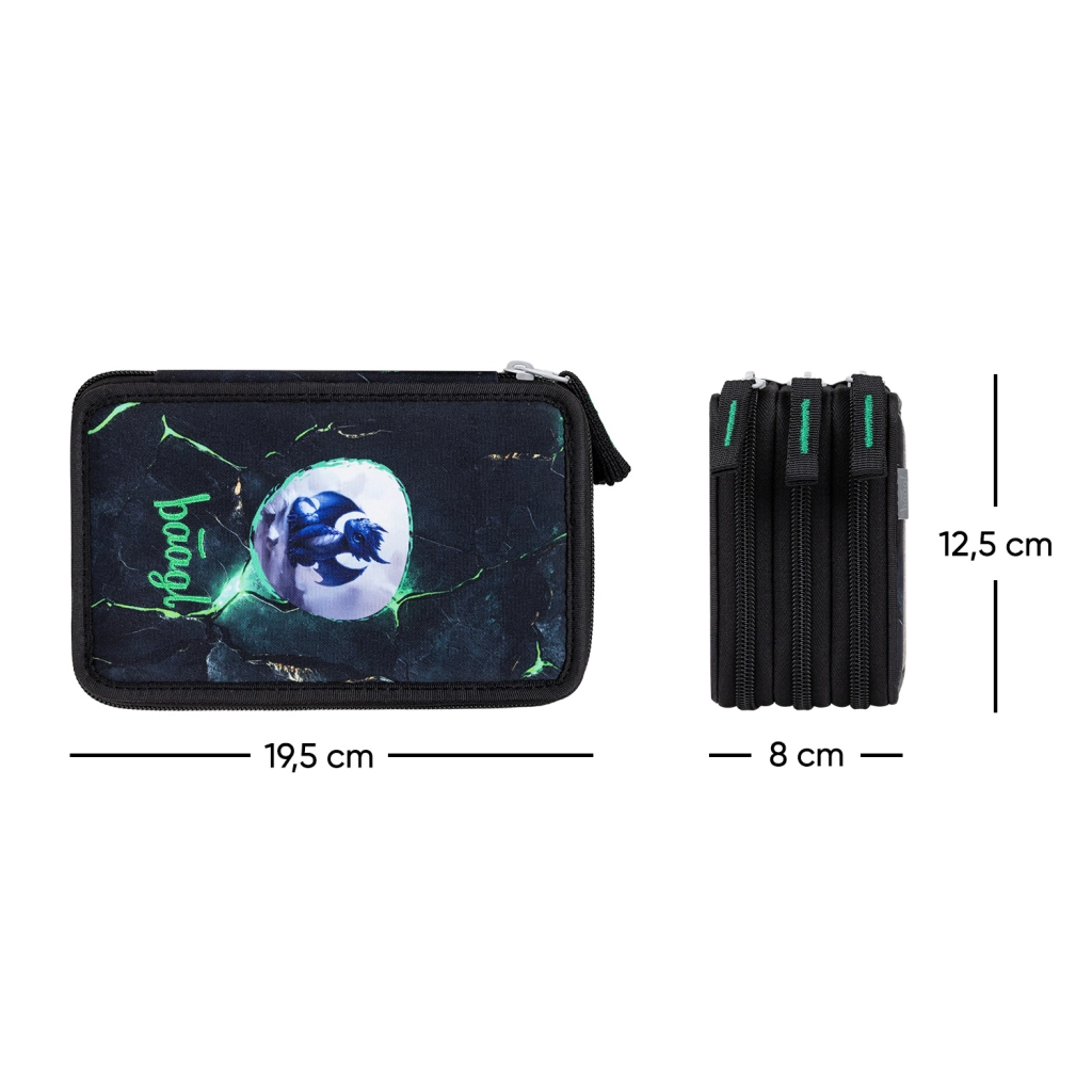 Descubre el práctico y resistente estuche BAAGL de tres pisos con un llamativo motivo de dragón. Tres compartimentos con cremallera independientes aseguran un almacenamiento organizado de todo lo que necesita el estudiante: desde lápices de colores y rotuladores hasta regla y goma. Las cremalleras de marca YKK y la construcción reforzada garantizan una larga vida útil incluso con uso diario.