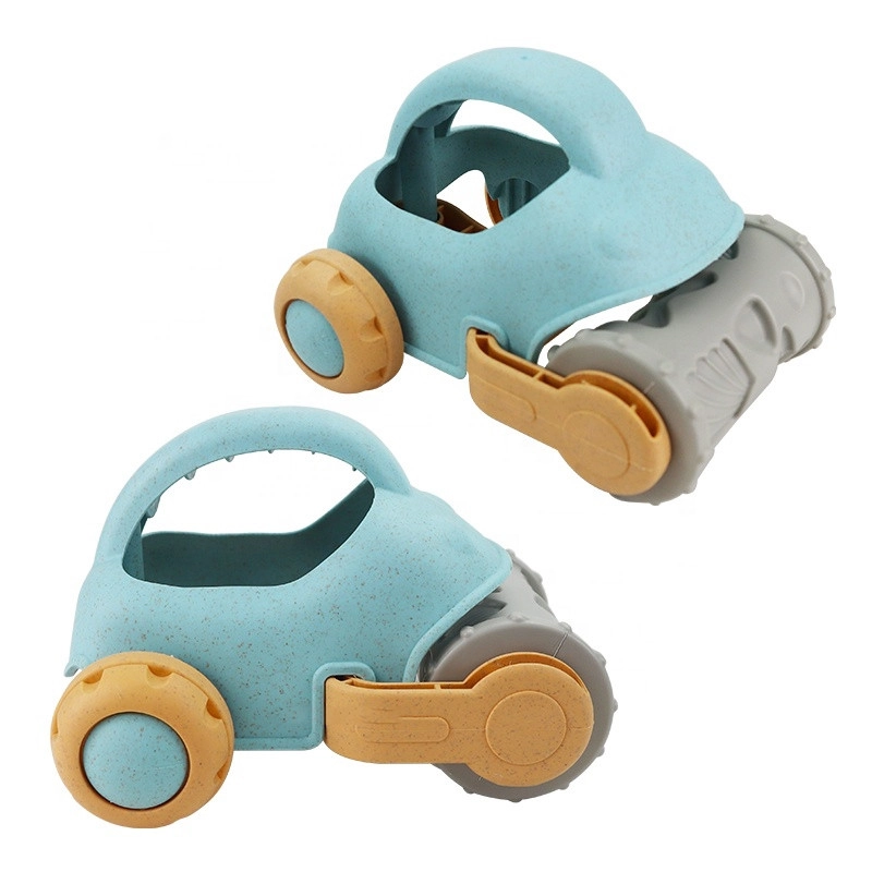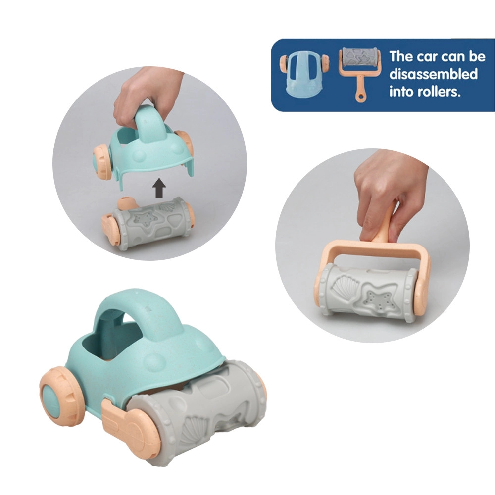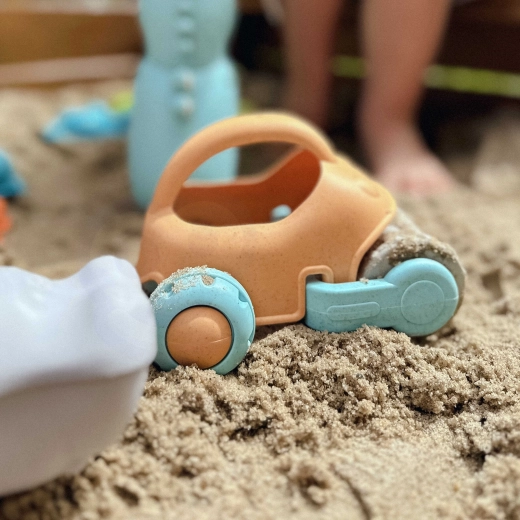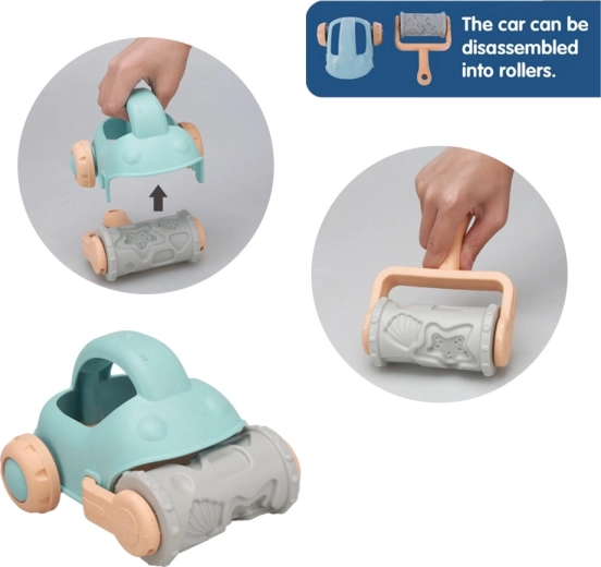 El vehículo ligero con agarre suave se puede empujar y llevar fácilmente. La parte frontal con rodillo crea huellas y texturas en la arena para creaciones originales.