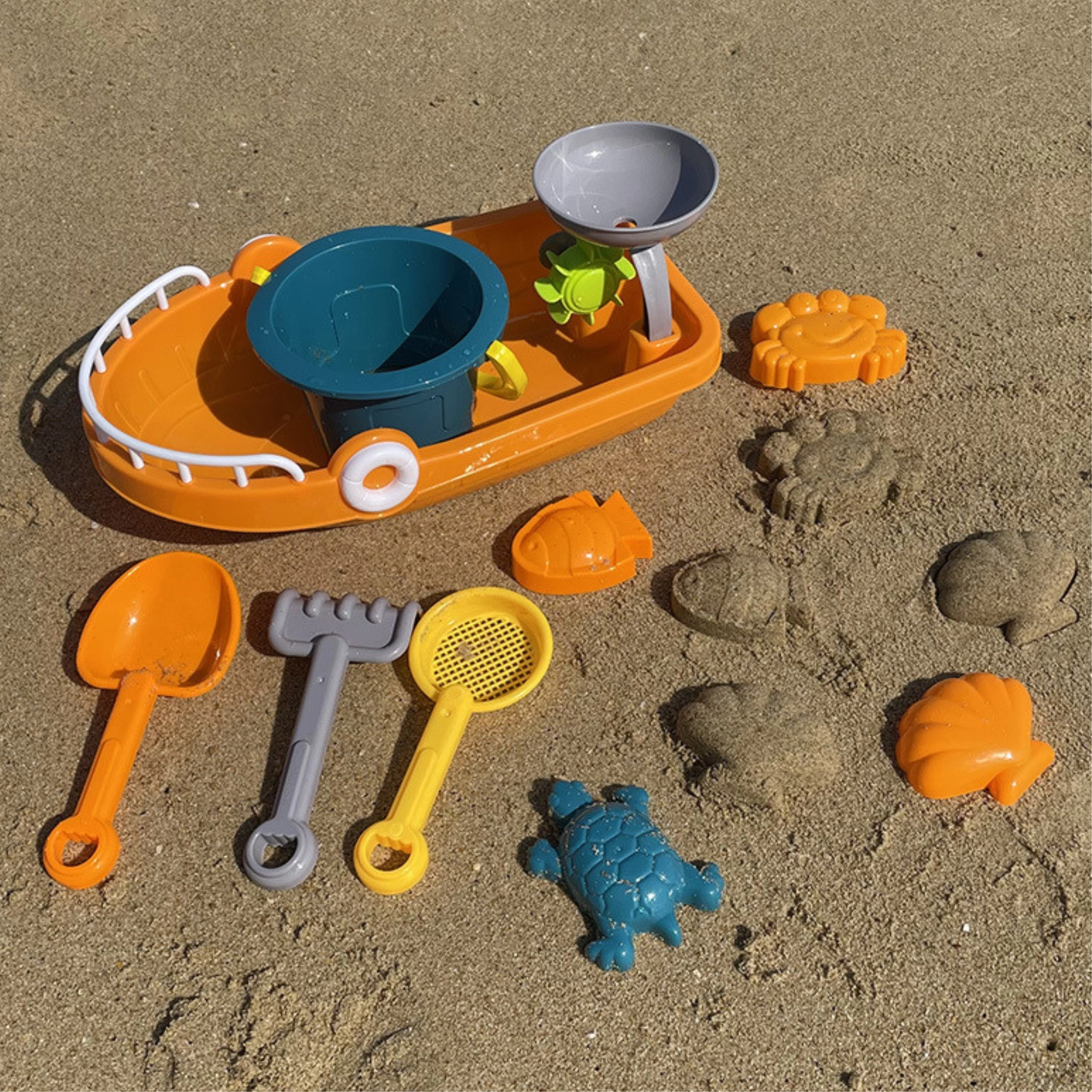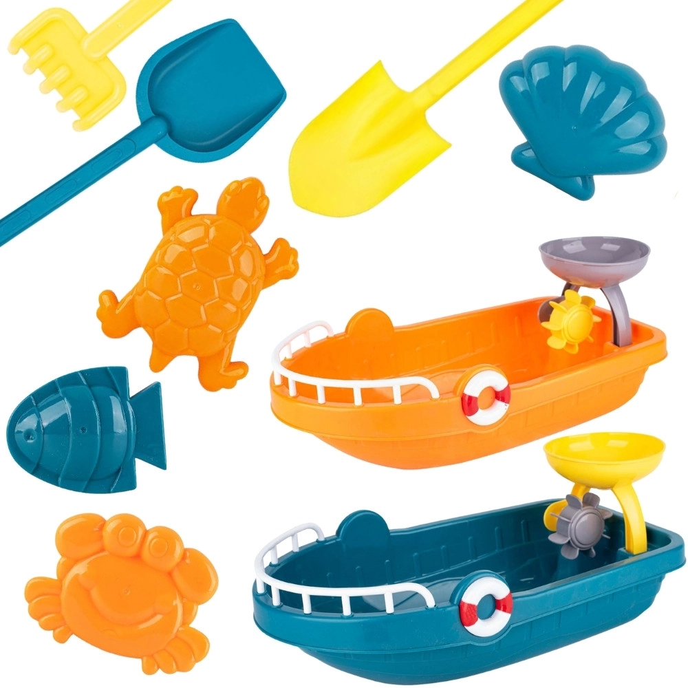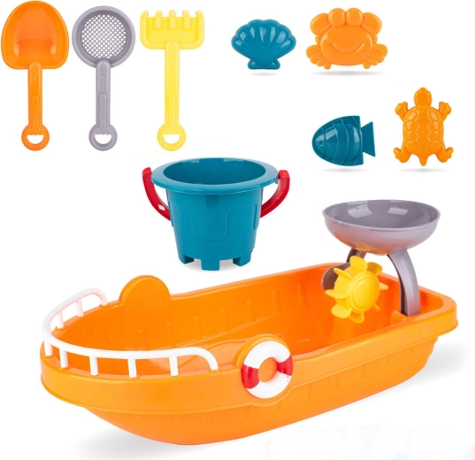 El gran barco sirve como cuenco de trabajo para arena y agua y también como práctica caja para transportar y guardar todos los accesorios.