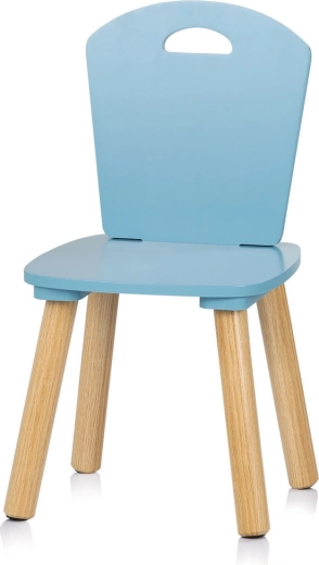 Este moderno conjunto de mesa infantil y dos sillas de CHIPOLINO combina confort, seguridad y un diseño atemporal en color azul. Las patas de madera estables y los bordes redondeados y lisos garantizan un uso cómodo y seguro para dibujar, jugar y comer.