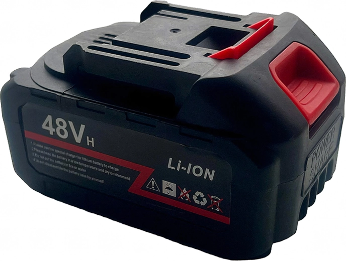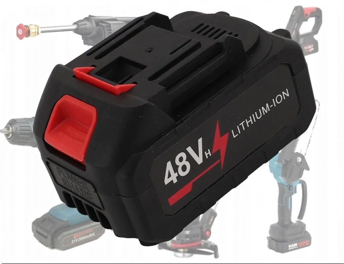 Esta batería Li-ion universal de 48 V con gran capacidad de 6000 mAh alimenta de forma fiable tus herramientas inalámbricas, desde taladros y atornilladores de impacto hasta mini motosierras y limpiadoras a presión a batería. El cuerpo robusto con aberturas de ventilación y cierre deslizante garantiza un montaje seguro y rápido en herramientas y cargadores compatibles.