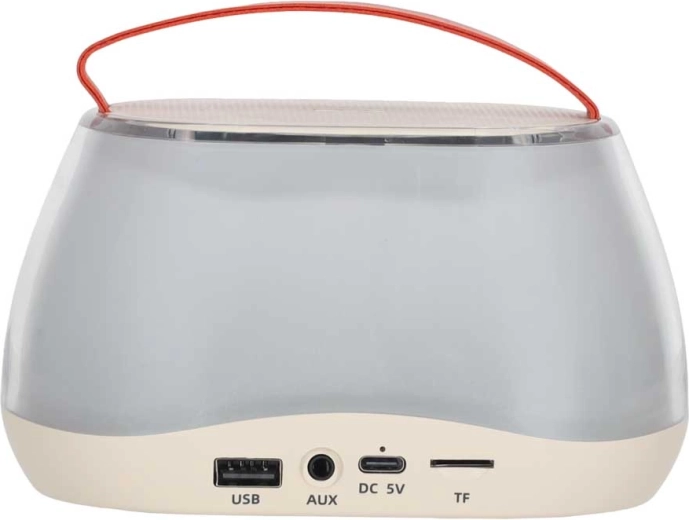 Bluetooth para streaming inalámbrico, USB y TF/microSD para archivos desde pendrive, AUX para fuentes por cable. Carga mediante DC 5 V/USB-C.