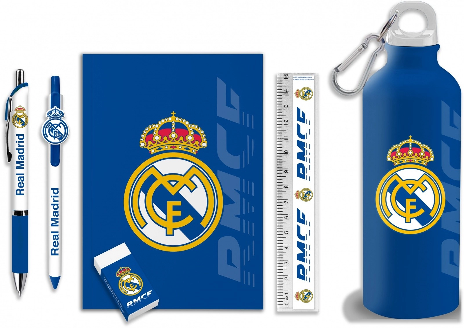 Práctico set escolar con diseño oficial de REAL MADRID que combina todo lo necesario para el día a día: botella de 650 ml, cuaderno y bolígrafo. Ideal para la escuela, el entrenamiento y los viajes, con motivo oficial del club para todos los aficionados del conjunto blanco.