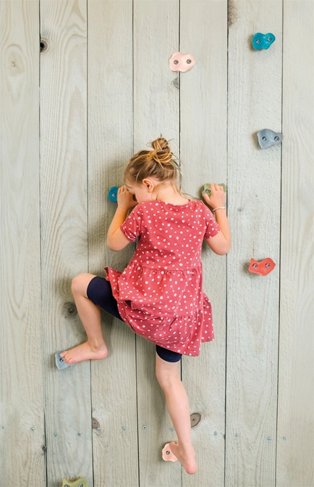 Gracias a la disposición libre ajustarás fácilmente la dificultad: desde recorridos para principiantes hasta desafíos más exigentes para pequeños boulderistas. La escalada desarrolla de forma natural la fuerza, la resistencia, la coordinación y la autoestima, y favorece un desarrollo motor saludable en los niños.