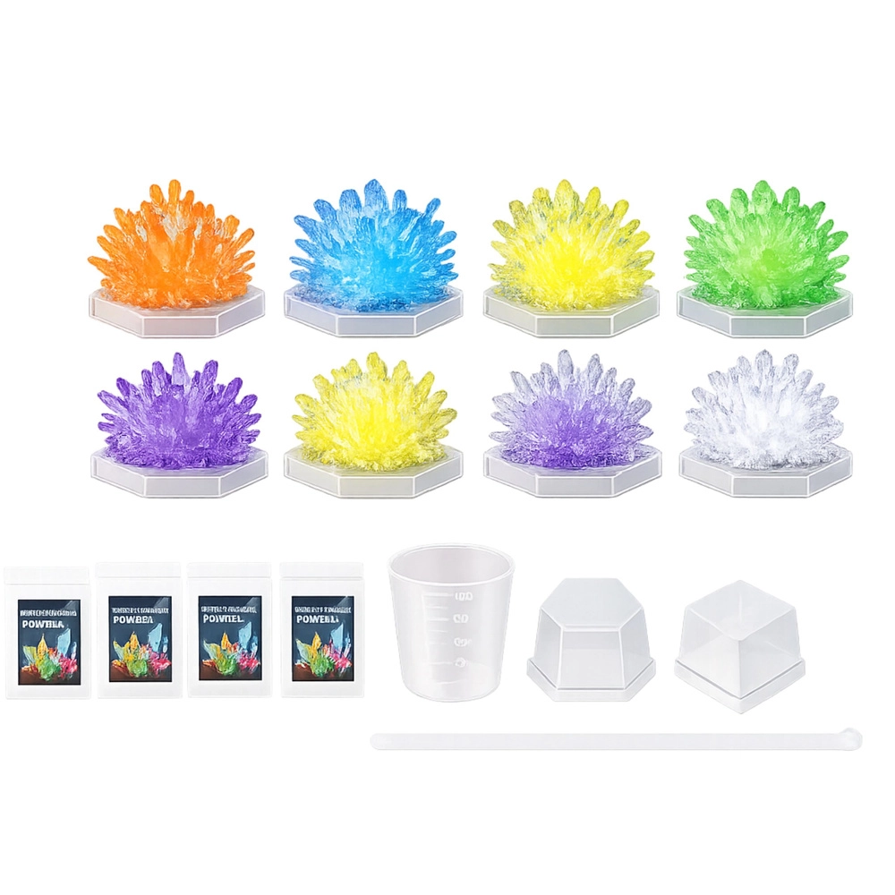 Descubre la magia de la química con el kit creativo DIY para cultivar cristales. Los niños crearán cristales de colores, seguirán paso a paso el proceso de cristalización y aprenderán los fundamentos de las ciencias naturales mediante un experimento divertido. Incluye todo lo necesario, como guantes de protección y una cúpula expositora para los cristales terminados.