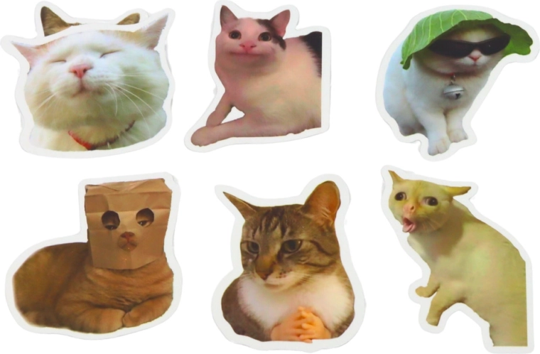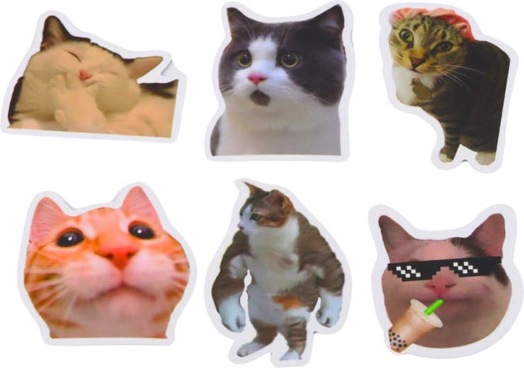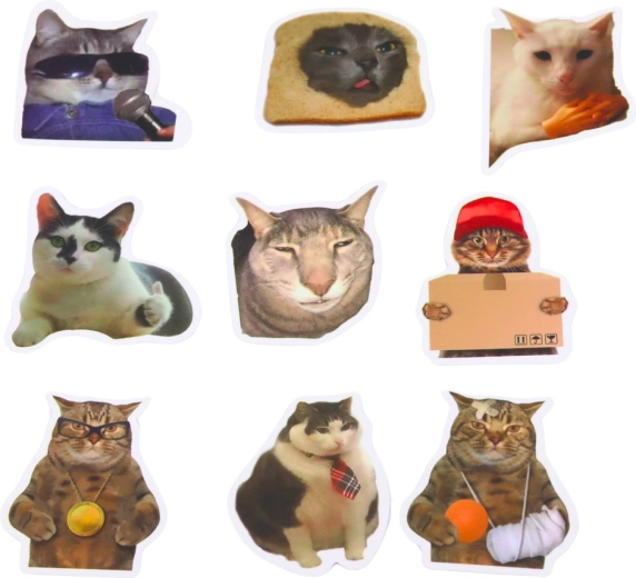 Hasta 50 diseños distintos de memes de gatos en un solo paquete: combina, pega, superpone y crea sin límites.