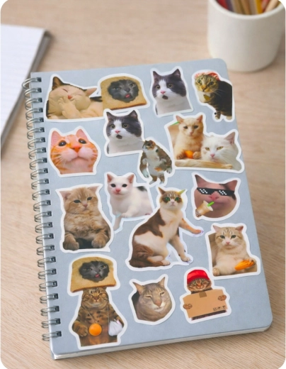 ¿Amas los gatos y el humor? Este set universal de pegatinas decorativas con gatos de memes convierte cualquier objeto en algo original. Gracias a los diseños variados, crearás composiciones únicas en libretas, diarios, móviles o regalos. El acabado fotográfico brillante destaca en superficies claras y oscuras.