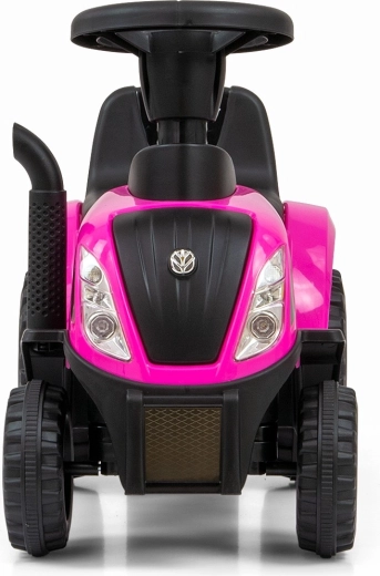 El correpasillos rosa NEW HOLLAND T7 es un tractor infantil con licencia que combina materiales resistentes, elementos de seguridad bien pensados y funciones divertidas. Gracias a su base estable de cuatro ruedas, ejes metálicos y protección antivuelco, los niños pueden moverse con seguridad tanto en casa como al aire libre. Las ruedas delanteras giratorias y el asiento cómodo con respaldo garantizan un manejo sencillo y confort durante la conducción.