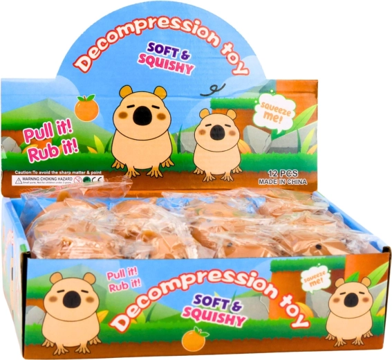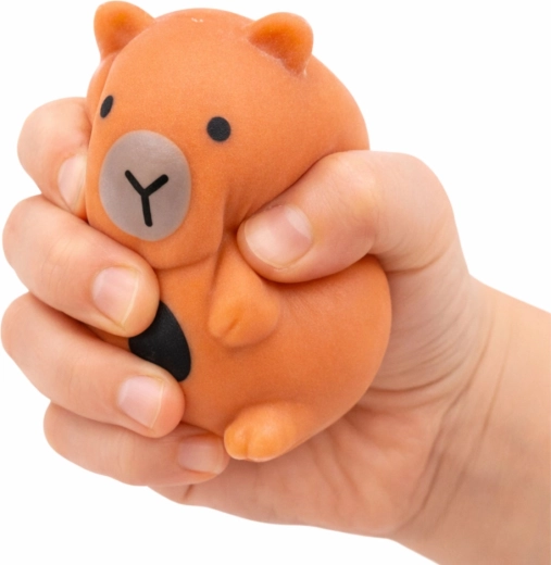 El juguete antiestrés con forma de capibara está fabricado en un material squishy blando y elástico, agradable al tacto y perfecto para apretar, comprimir y estirar. Al presionarlo se deforma por un momento y luego vuelve lentamente a su forma original, lo que produce una sensación calmante y relajante.