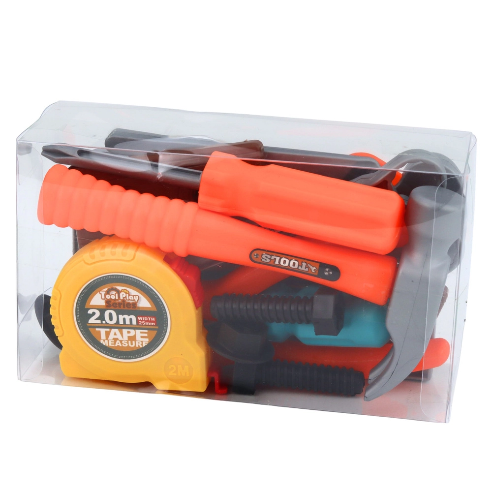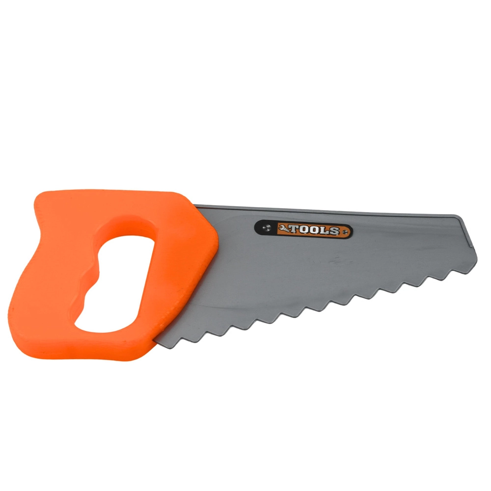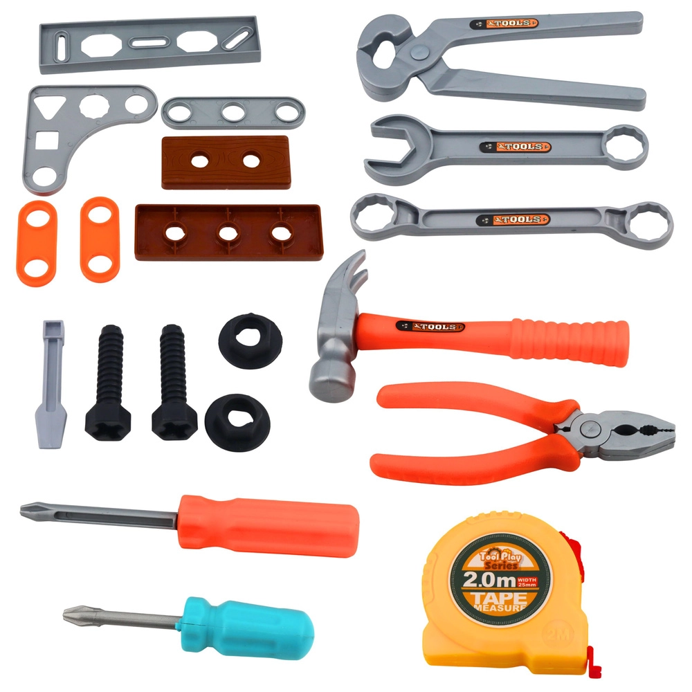Sierra manual, martillo, destornilladores, llaves y escuadra amplían las posibilidades de juego y desarrollan la motricidad fina.
