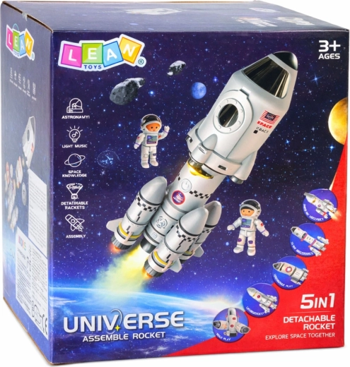 La construcción modular permite un montaje y desmontaje sencillos de las piezas y crear diferentes configuraciones del cohete y la nave. Las figuras de astronauta fomentan el juego de roles y la creación de historias propias. Las pegatinas decorativas aportan un aspecto original al cohete.