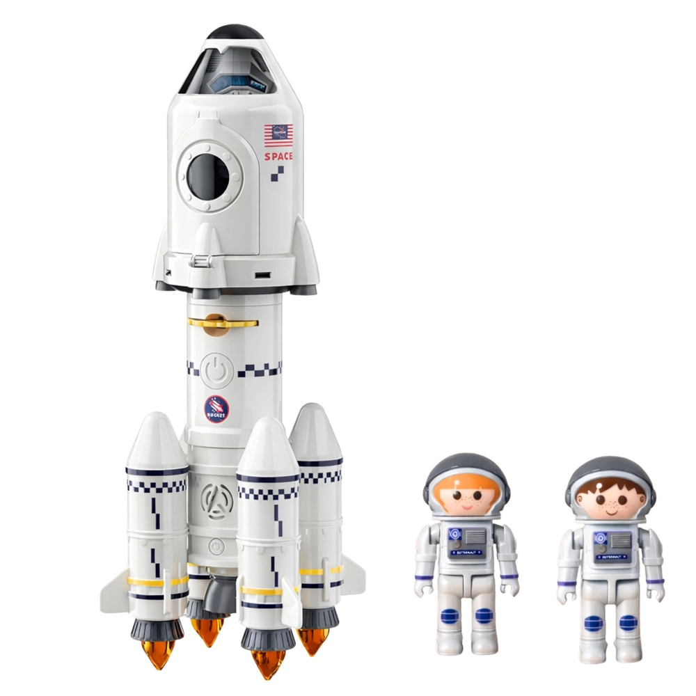 - 5 en 1: cohete, nave, proyector y accesorios para escenarios de misión