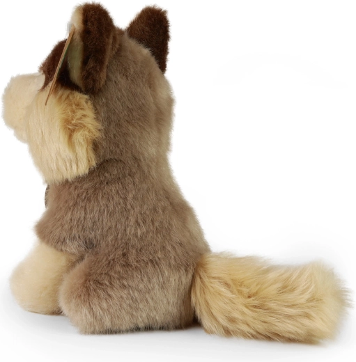 Este lobo de peluche sentado conquistará el corazón de niños y adultos. Su pelaje bicolor y suave, el hocico bordado con detalle y los ojos expresivos aportan a la pieza un aspecto realista. Gracias a su tamaño compacto de 16 cm es ideal para achucharlo en casa o llevarlo contigo.