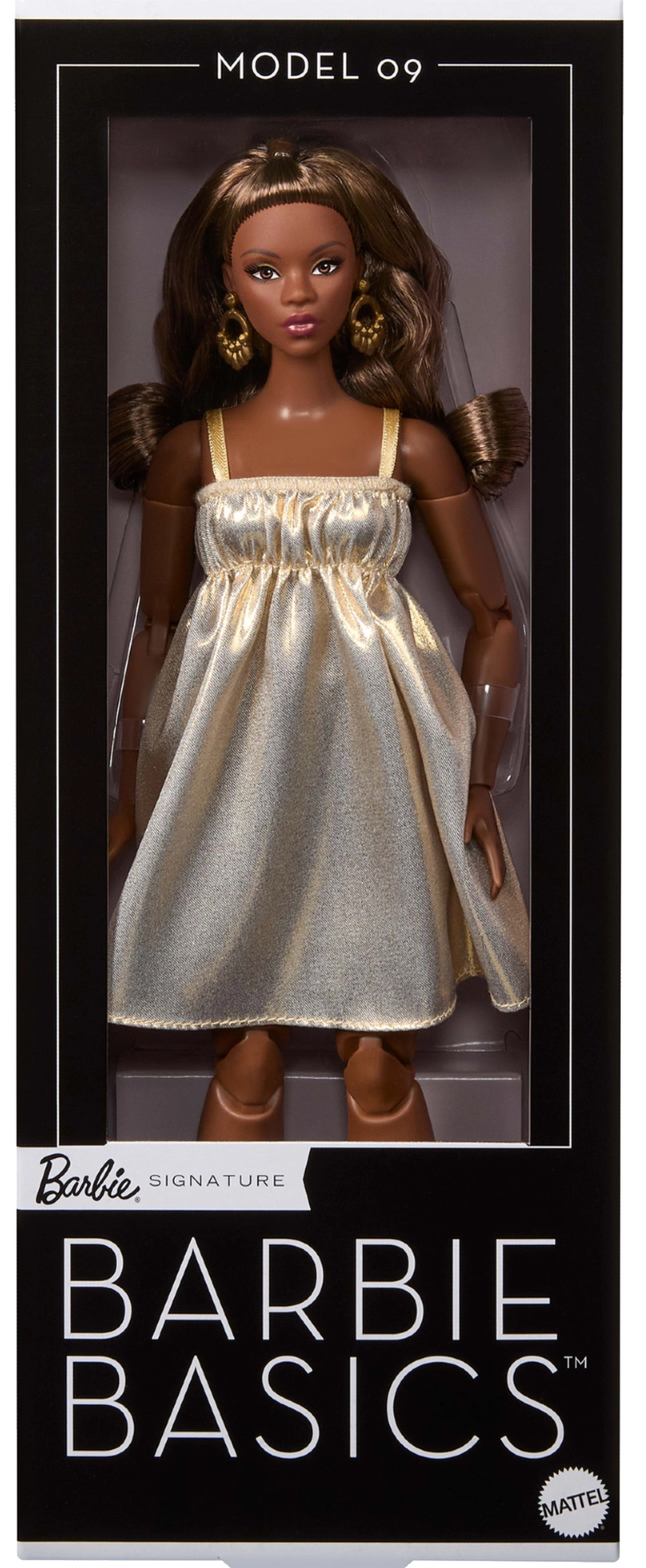 La muñeca de colección BARBIE de la serie Signature Basics aporta minimalismo moderno y elegancia pura. Este modelo con tono de piel más oscuro, figura atlética y cabello largo castaño con sutiles mechas resulta sofisticado y luce tanto para jugar como en exhibición.
