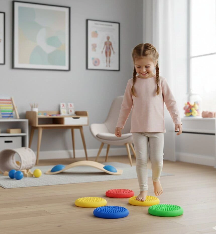 Descubra una forma divertida de fomentar el equilibrio, la coordinación y la percepción sensorial en niños y adultos. Este juego de cuatro discos de colores con textura marcada ofrece una superficie antideslizante, un agradable masaje de pies y un entrenamiento de estabilidad eficaz. Fabricados con materiales seguros: sin ftalatos, BPA ni metales pesados; ideales para ejercicio en casa, guarderías y fisioterapia.