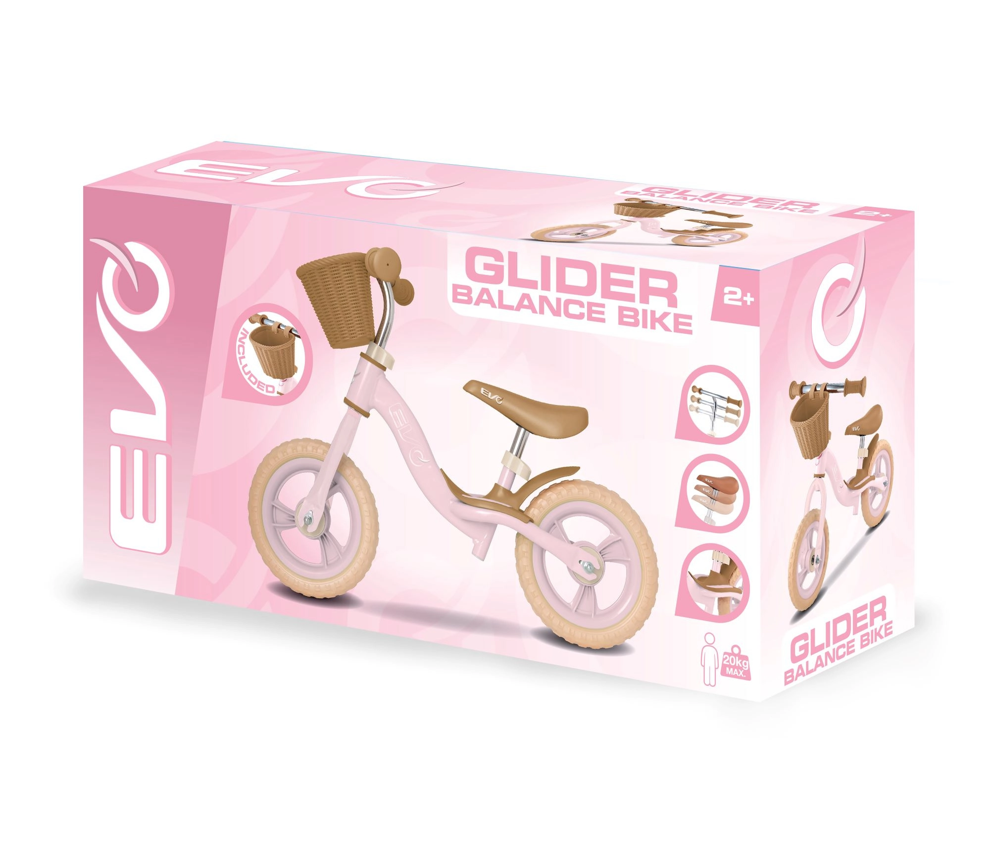 La elegante bicicleta de equilibrio infantil EVO Glider es la primera bici ideal para pequeños pilotos a partir de 2 años. Gracias al cuadro ligero, el asiento y el manillar ajustables y las ruedas EVA de 10" sin mantenimiento, ayuda a desarrollar de forma natural el equilibrio y la coordinación. La práctica cesta delantera lleva su juguete favorito y el reposapiés integrado apoya el entrenamiento de estabilidad durante la marcha.