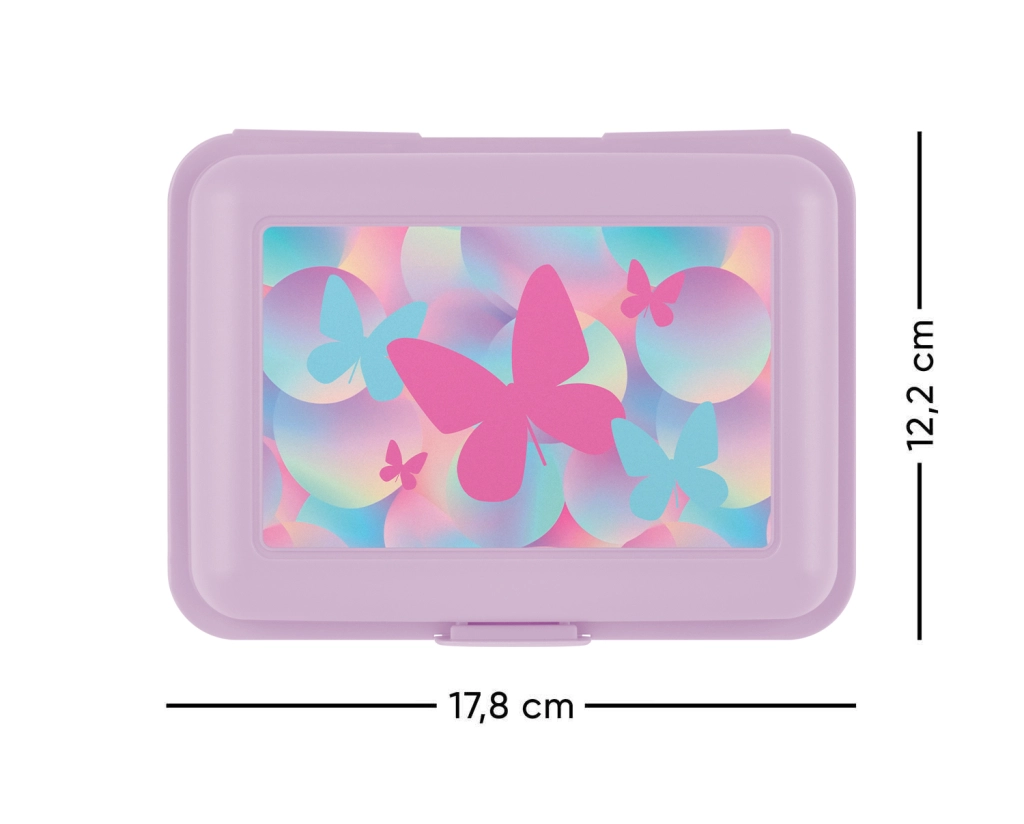 El tabique separador interior permite separar fruta, pan o verdura para que las distintas partes de la merienda no se mezclen. La caja es ligera, compacta y cabe fácilmente en la mochila o bolsa escolar.