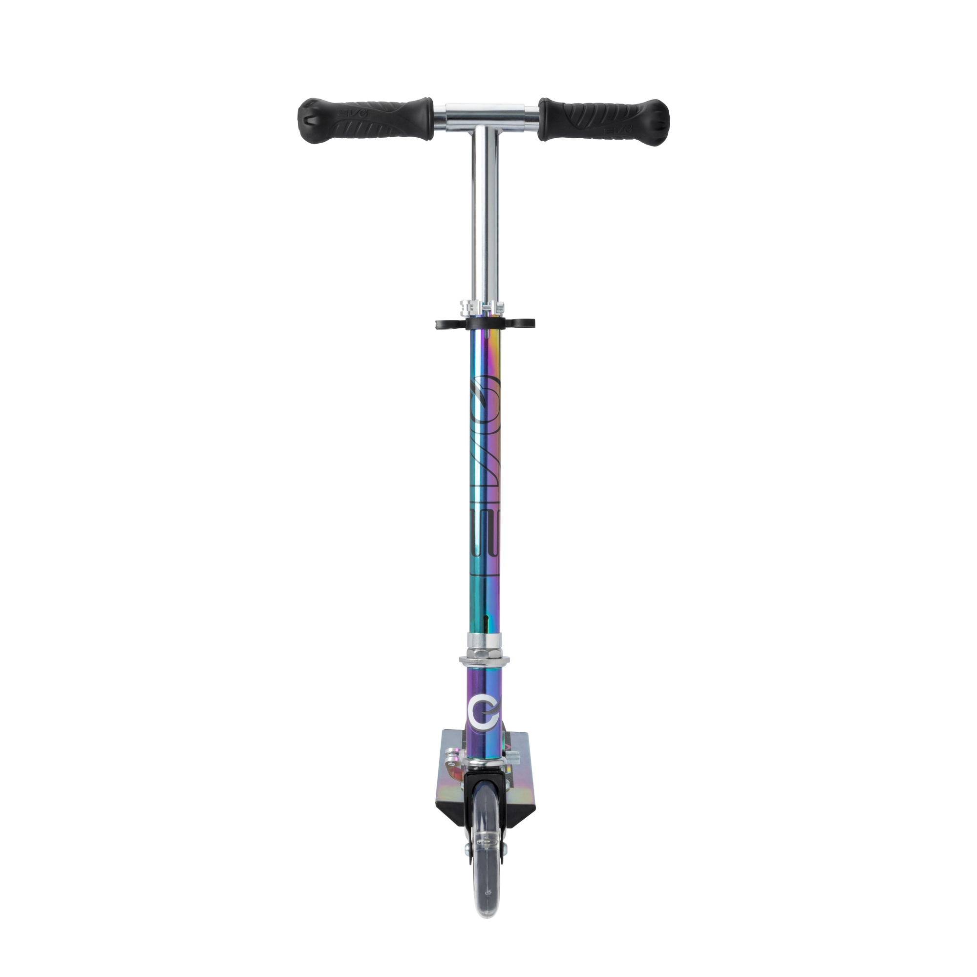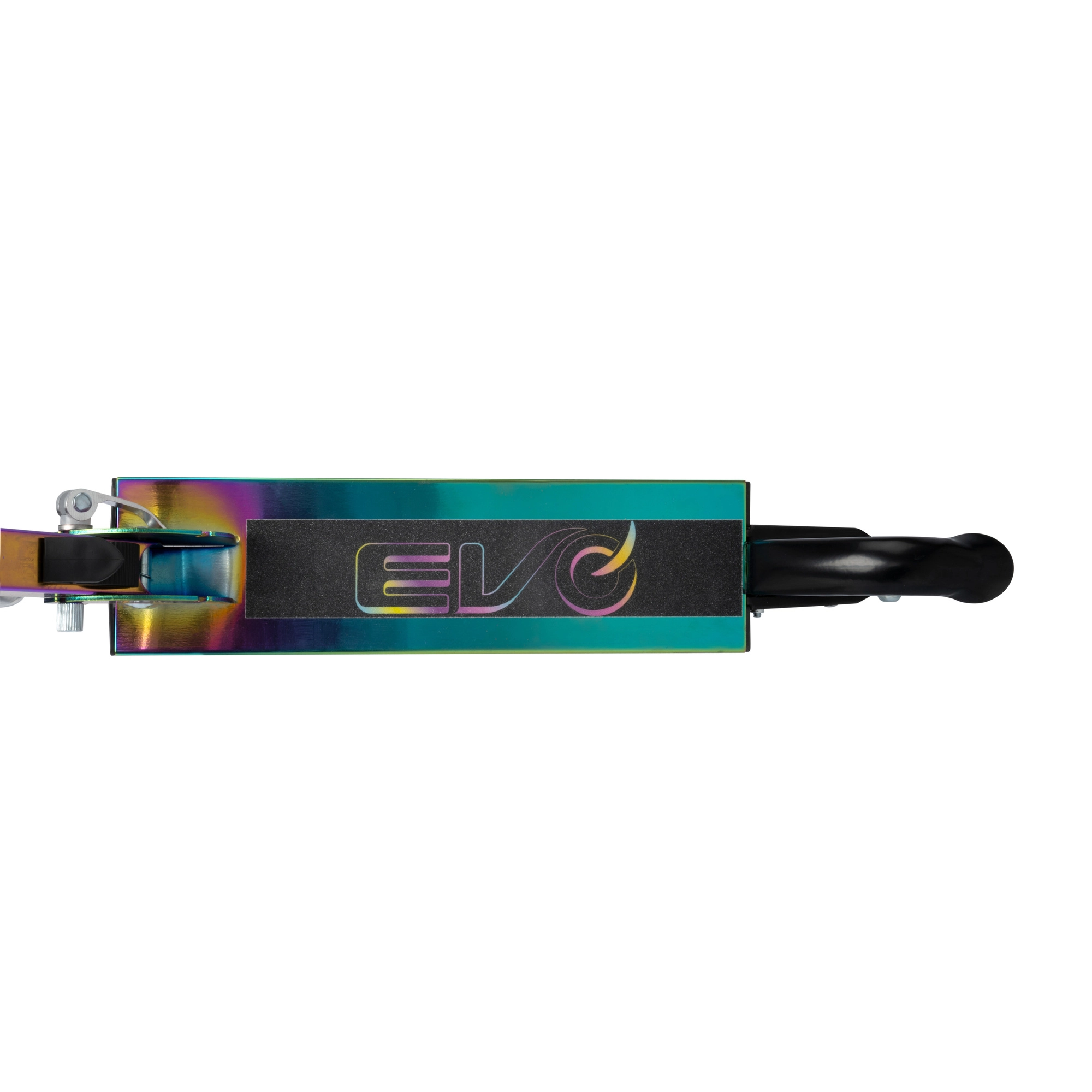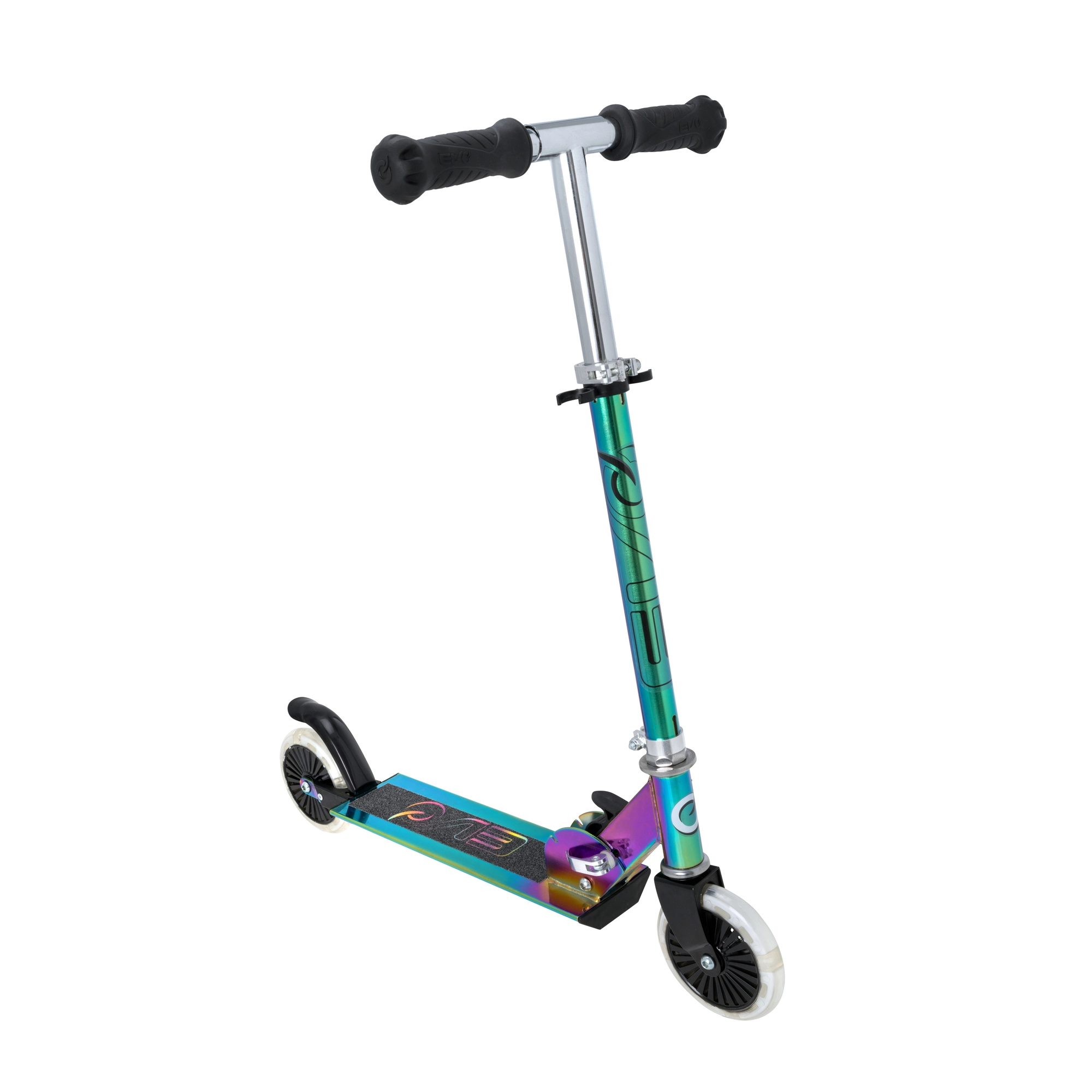 El patinete EVO Light Up Neochrome es una gran elección para pequeños riders que quieren destacar. Gracias al manillar ajustable (aprox. 67–77 cm) crece con el niño, el mecanismo de plegado facilita el transporte y el almacenamiento, y la robusta estructura metálica con plataforma antideslizante aporta seguridad durante la conducción.
