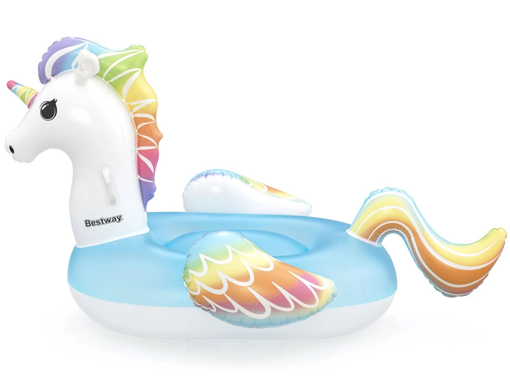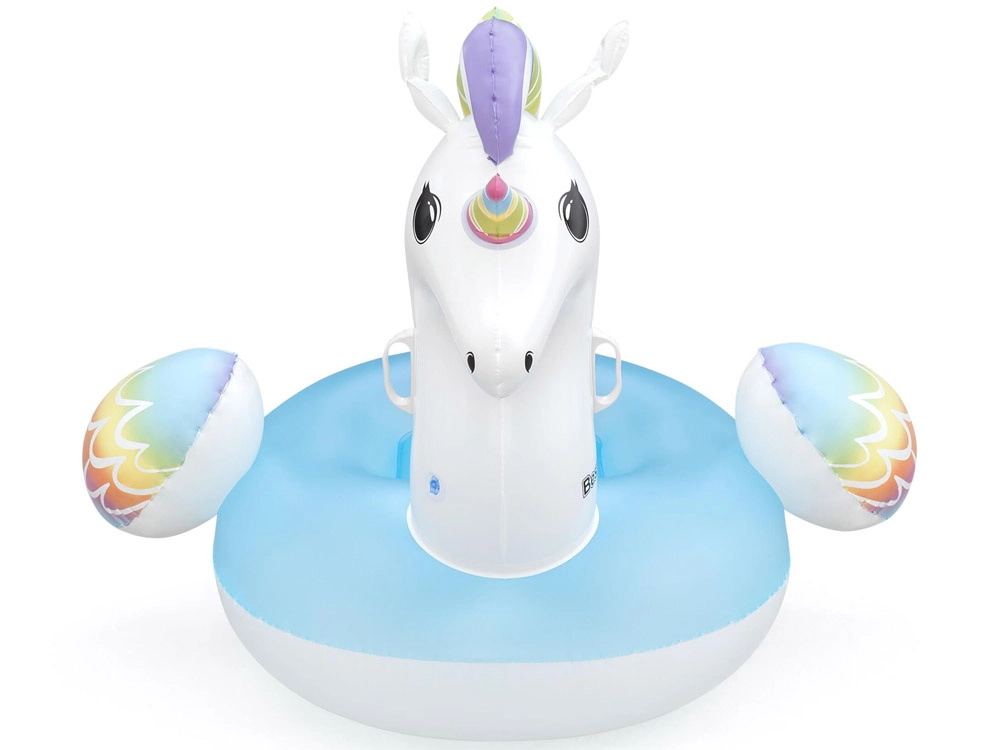 El unicornio inflable Bestway en colores vivos con alas y crin arcoíris es una elección perfecta para la diversión acuática veraniega. Gracias a su construcción estable y a las prácticas asas, los niños disfrutarán de un paseo cómodo y de un juego más seguro sobre la superficie del agua.