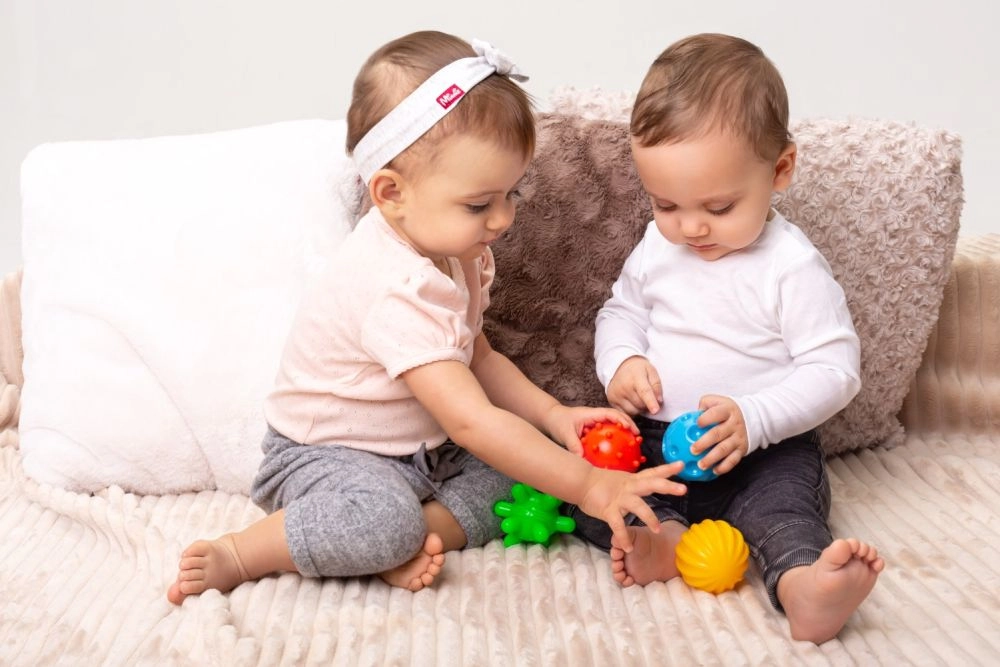 Las pelotas sensoriales TULLO aportan a los niños una rica variedad de texturas y colores que desarrollan el tacto, la coordinación ojo–mano y la curiosidad natural. Gracias a la ausencia de orificios, no entra agua ni suciedad, por lo que son higiénicas y fáciles de mantener: ideales dentro y fuera de la bañera.