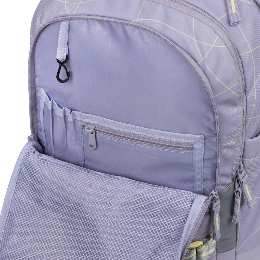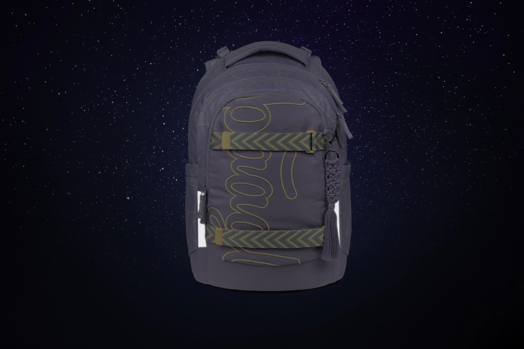 La disposición de tres compartimentos con organizador claro, bolsillo aterciopelado para portátil o tablet y prácticas cremalleras YKK bidireccionales garantizan un acceso rápido y un almacenamiento seguro del material escolar y la electrónica. Los bolsillos laterales de material resistente alojan una botella y combinan con el diseño de la mochila. El material resistente e impermeable con certificación GRS y los llamativos elementos reflectantes aumentan la seguridad y el respeto por la naturaleza.