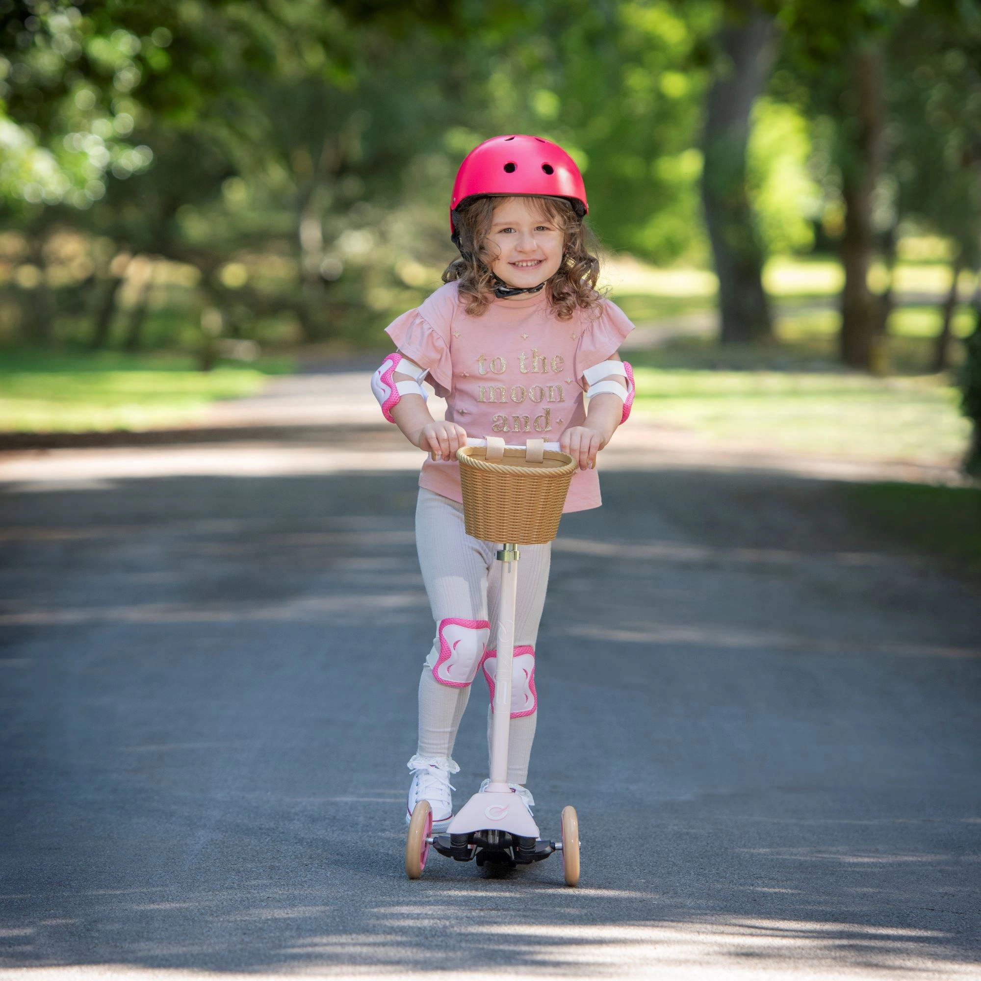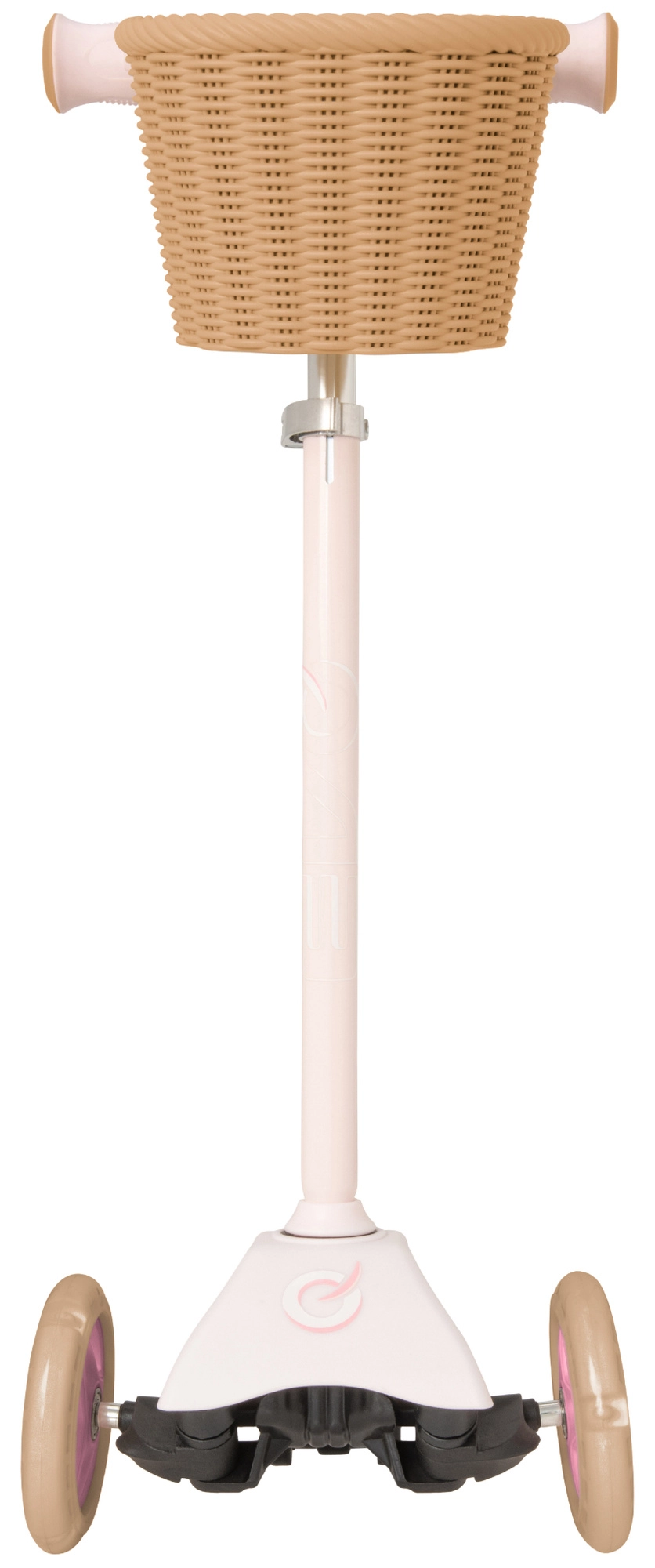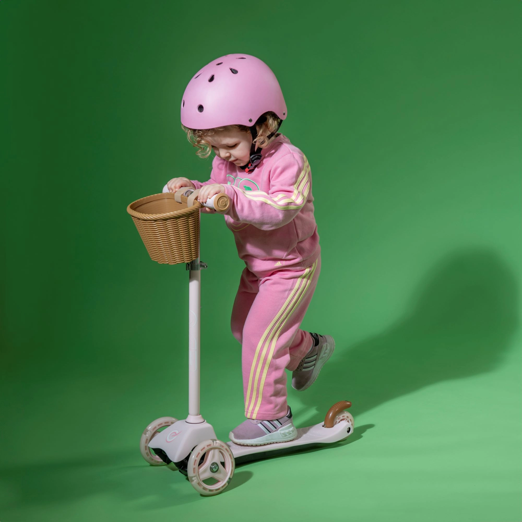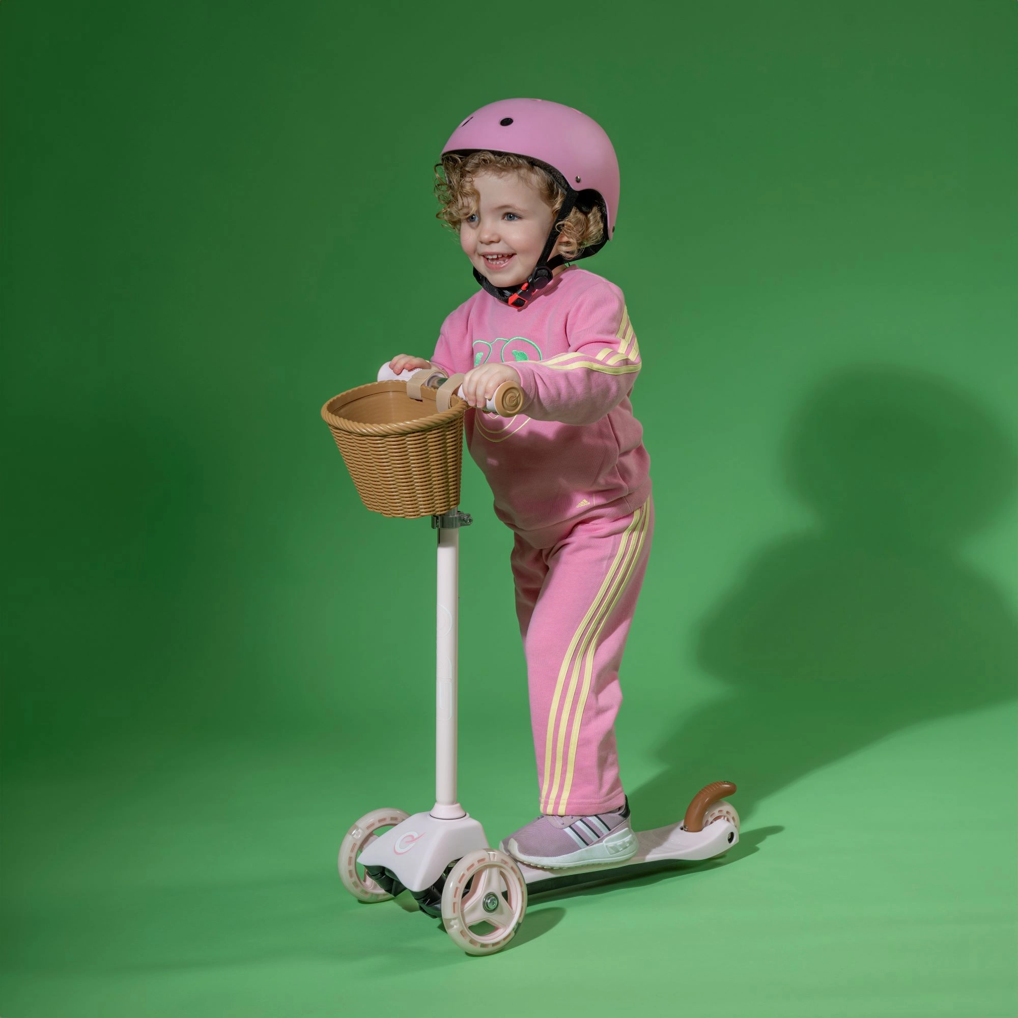 El patinete rosa EVO Mini Cruiser es ideal para los más pequeños a partir de 2 años. Gracias a sus tres ruedas, la amplia y estable base y el freno trasero de pie, los niños aprenden equilibrio y coordinación de forma segura y divertida. El manillar con altura regulable crece con el niño y la cesta desmontable guarda pequeños objetos para el camino.