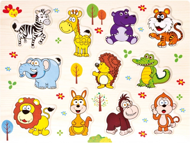 Este gran rompecabezas de madera con animales del safari entusiasmará a los pequeños exploradores. Las piezas encajables de colores se sujetan fácilmente y ayudan a los niños a entrenar las habilidades motoras y el razonamiento lógico. La estable base de madera mantiene la forma y garantiza un montaje cómodo.