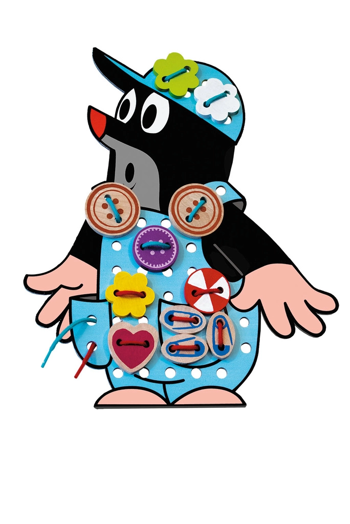 Este exclusivo juguete de bordado con la icónica figura del Topo ofrece diversión y, al mismo tiempo, enseña habilidades importantes. Los niños pueden crear sus propios diseños con piezas de madera de distintas formas y estampados, que se fijan sobre una plantilla de cartón.