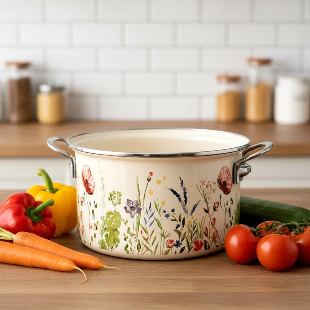 Gracias a su amplia compatibilidad, la olla es apta para gas, electricidad, vitrocerámica, halógeno e inducción y también se puede utilizar en el horno. Después de cocinar, puedes introducirla sin problema en el lavavajillas. El esmalte es higiénico e inocuo para la salud, por lo que no absorbe olores ni sabores y es seguro incluso para alérgicos. El decorado puede presentar pequeñas irregularidades de fabricación (p. ej., ligeras abombaduras o estampado asimétrico) que no afectan a la funcionalidad y subrayan el carácter tradicional del producto.