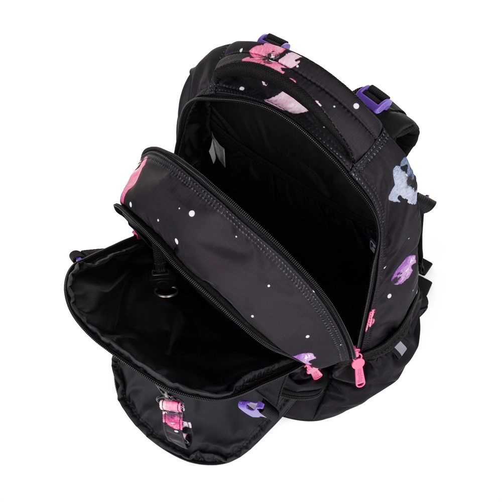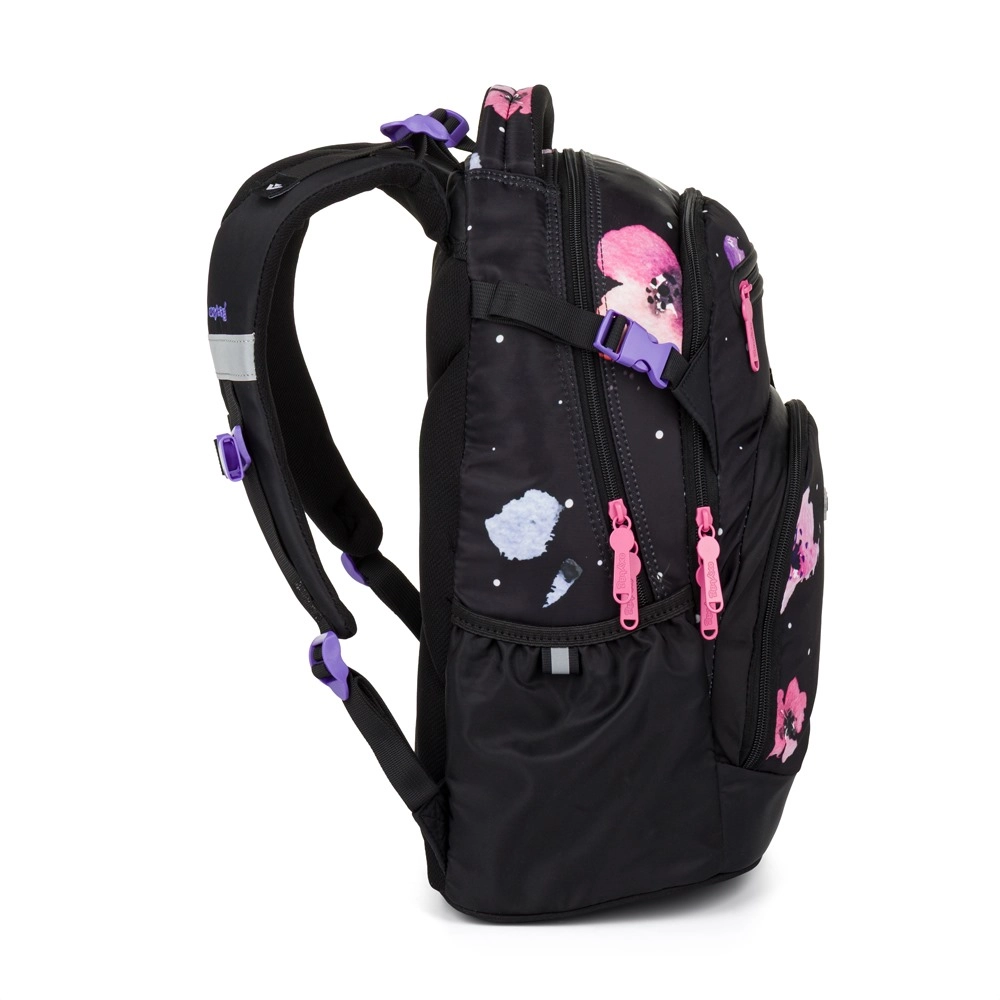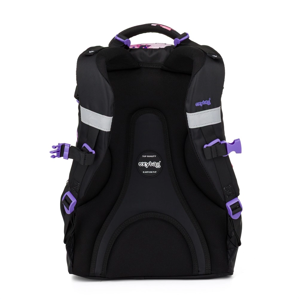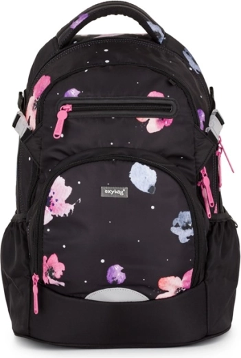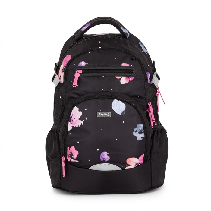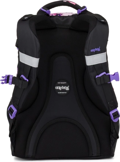 La mochila escolar OXY Ombre Flowers está diseñada para un uso diario cómodo desde 3.º curso. Gracias al panel trasero ergonómico (longitud 43 cm) y a los tirantes suavemente acolchados, se adapta perfectamente a la espalda infantil. La correa de pecho ajustable mantiene los tirantes en su sitio, mientras que el fondo rígido y estable evita que se vuelque y protege el contenido.