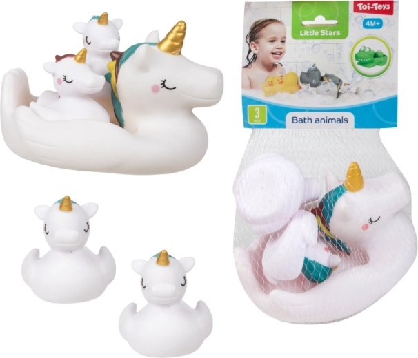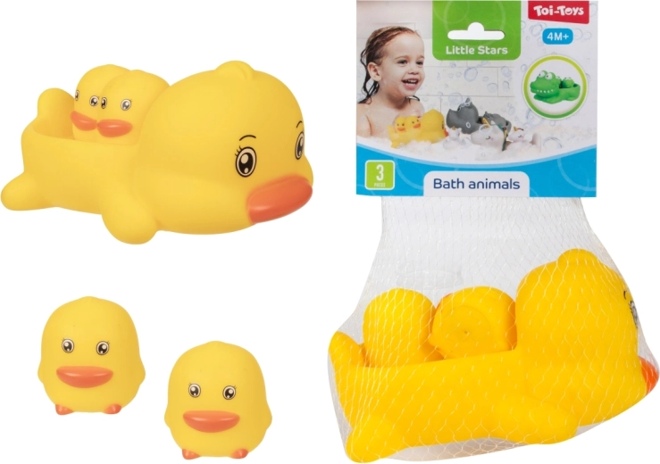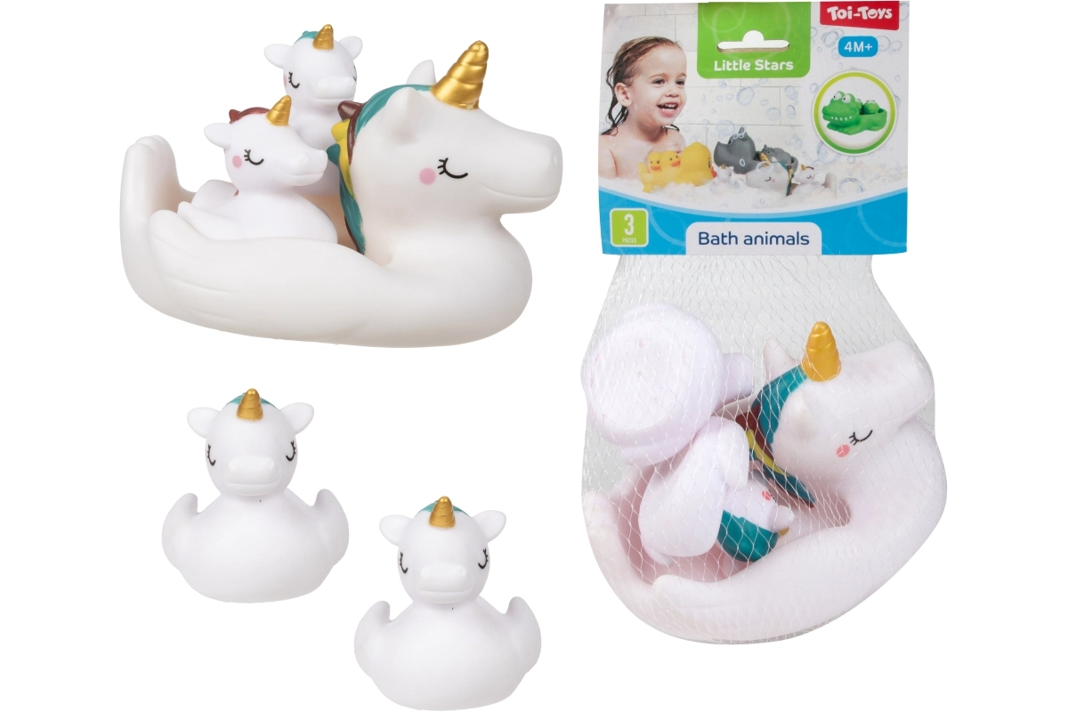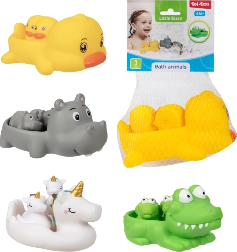 Convierte el baño en un ritual divertido con un set de adorables juguetes acuáticos. El paquete incluye 1 animal flotante más grande y 2 figuritas más pequeñas, que el animal grande puede llevar sobre la espalda. Los juguetes son ligeros, flotantes y fáciles de agarrar incluso para manos pequeñas. Presentación práctica en red. Apto a partir de 4 meses.